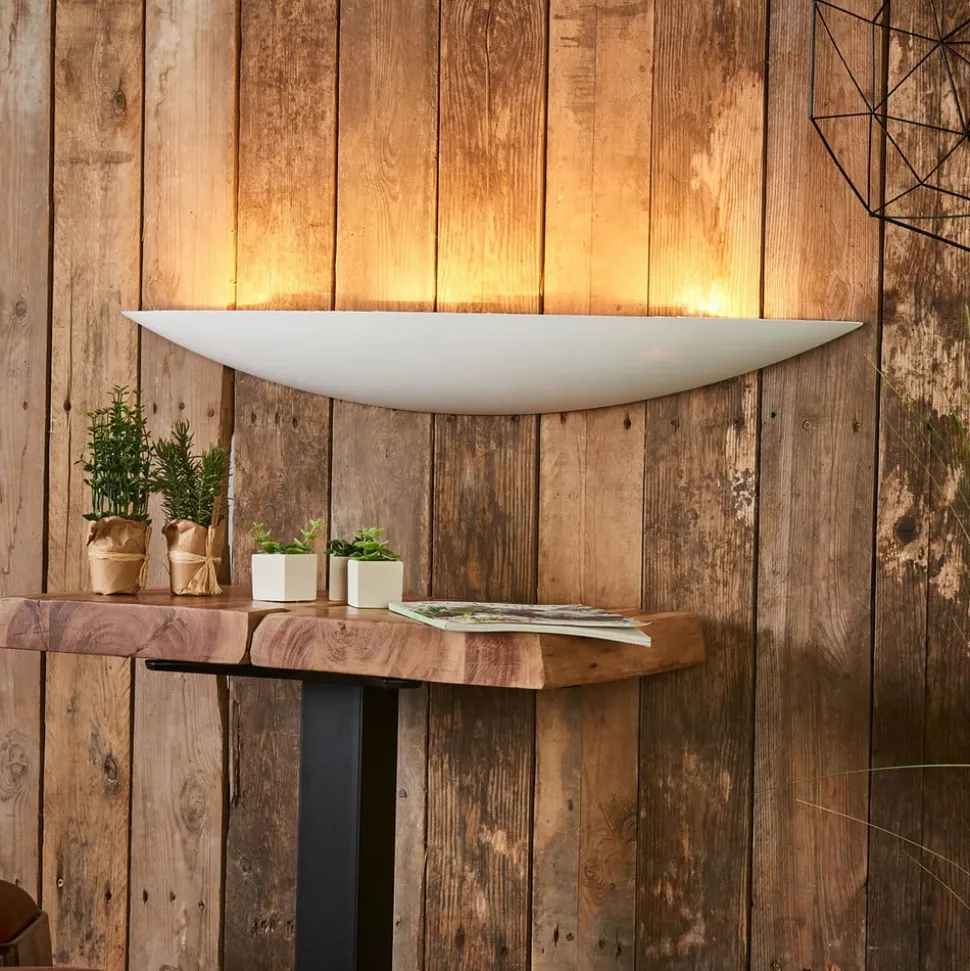 Elegant gipsvægslampe Tommi med store dimensioner Gipsvægslamper bliver mere og mere populære, selvom de normalt er kendt for deres kompakte design. I tilfældet med Tommi er dette dog ikke tilfældet, da gipsvægslampen faktisk strækker sig over en bredde på 1 meter og giver plads til 4 E14-lamper. Armaturet er designet som en projektør, så lyset kun kan sendes opad og kun kommer indirekte ind i rummet. Det sikrer, at belysningen opleves som meget hyggelig. Ved levering er gipsoverfladen blot hvid, hvilket ser harmonisk ud og lover alsidighed. Men der kan også være mennesker, for hvem det simpelthen er for kedeligt, og som gerne vil have en anden farvesammensætning. Også her kan vi anbefale Tommi gipsvægslampen, da den er velegnet til maling og overmaling.