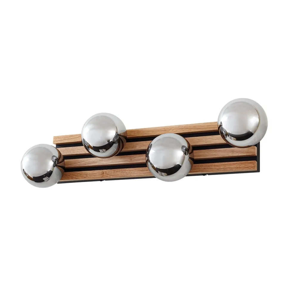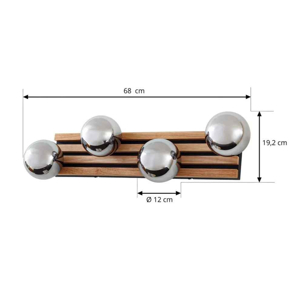 Væglampe Woodora forener den naturlige skønhed af gummitræ med elegancen af røggråt glas. Denne lampe med 4 lyskilder er et highlight i ethvert designorienteret interiør og skaber en fascinerende lyseffekt. Optisk minder den om moderne akustikpaneler. Den kan monteres både på loftet og på væggen.