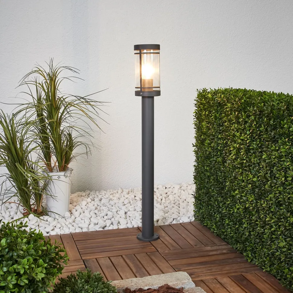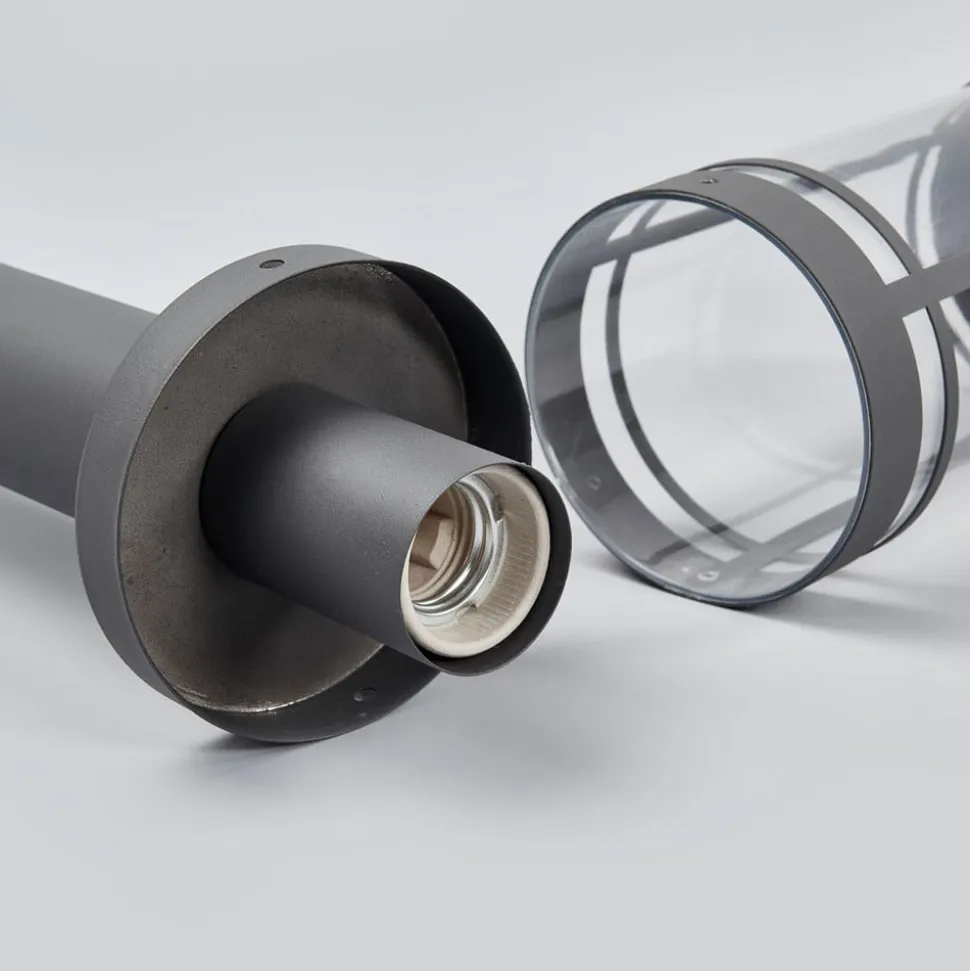 Djori leveres med en pære til fatning E27, og da polycarbonatindsatsen er klar, anbefales det at bruge en pære med et tiltalende udseende, f.eks. en filamentpære, der ligner en traditionel glødepære. Stativet i rustfrit stål har en mørkegrå finish, og den cylinderformede lampeskærm supplerer det samlede design perfekt. Derfor er Djori en vejlampe, der er ideel til belysning af indkørsler og havegange, så man føler sig tryg og kan finde vej, selv når mørket er faldet på.