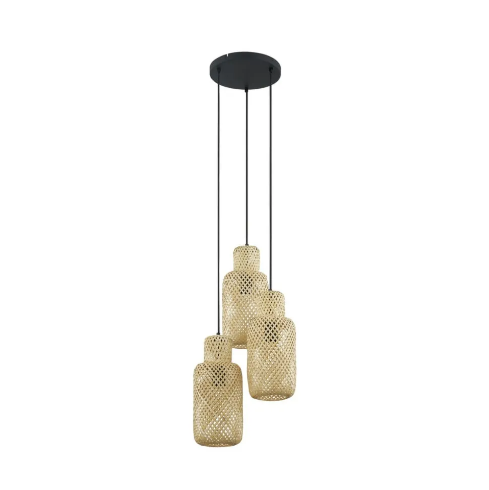 Lindby Venora hængelampe, rund, 3 lyskilder, Ø 15 cm, bambus