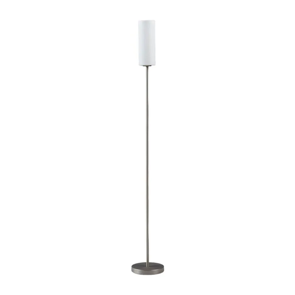 Smal Vinsta gulvlampe med et diskret, tidløst udseende Vinsta passer til mange indretninger i moderne stil, da den ganske enkelt består af et smalt stel med en rund base og en cylindrisk glasskærm med en hvid nuance. Lyset er behageligt og ensartet, så Vinsta kan supplere en hyggelig atmosfære på en smuk måde. Afbryderen er placeret i forsyningskablet og er let at betjene.