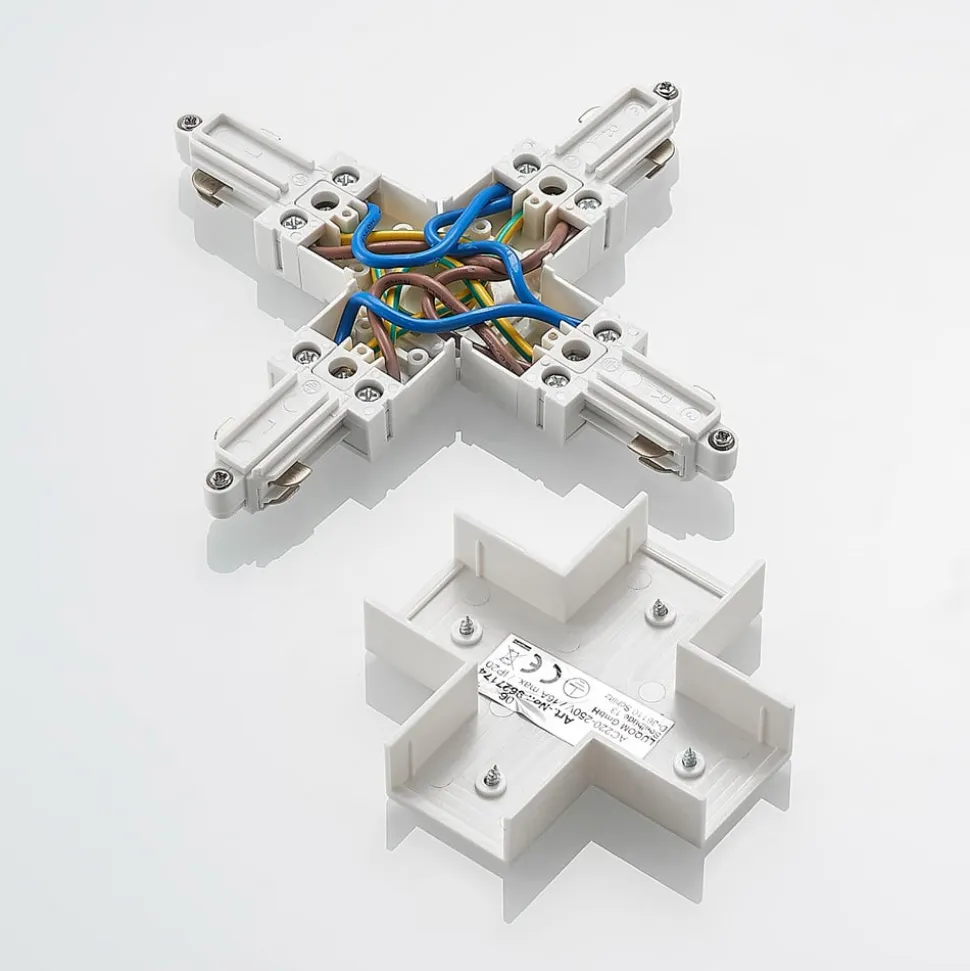 Hvid X-forbinder, Linaro 1-faset skinnesystem Den hvide X-forbinder kan bruges til at forbinde fire skinner og dermed nemt udvide et 1-faset skinnesystem. Ideel til hvide skinner for at opnå en visuelt diskret forbindelse.