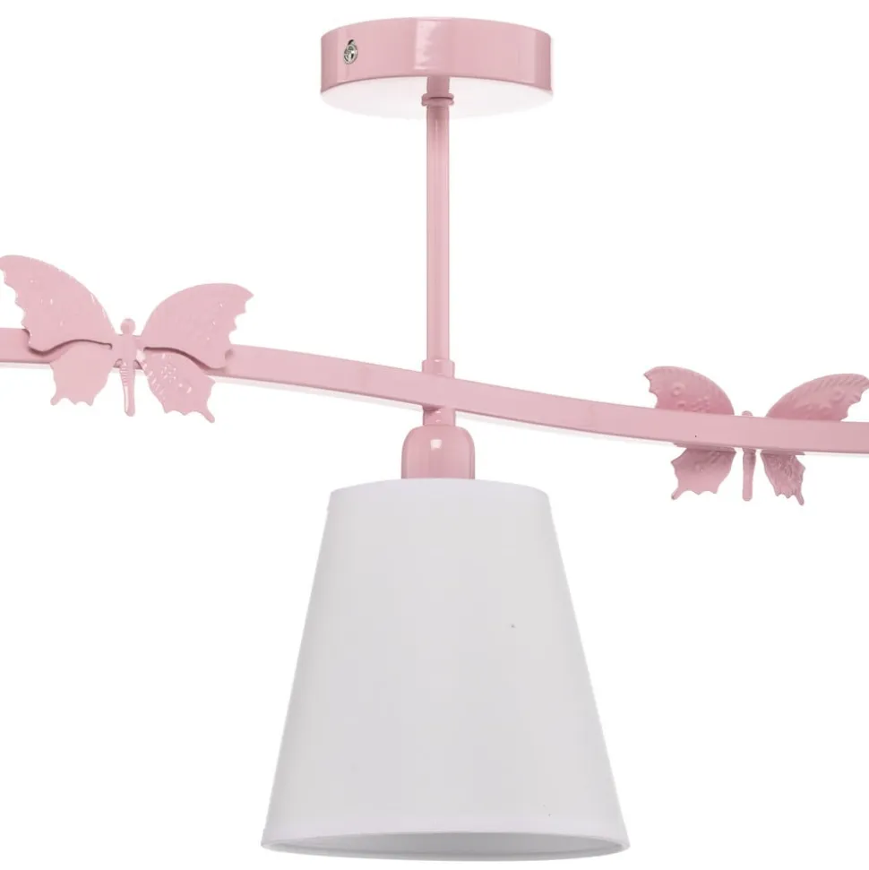Loftlampen Alice kombinerer moderne design med materialer af høj kvalitet og er et blikfang i ethvert rum. Med sine tre elegante hvide stofskærme og den stilfulde lyserøde accent passer den perfekt ind i den unge boligstil. Kombinationen af tekstil og stål skaber en harmonisk balance mellem lethed og stabilitet, der gør indtryk i stuer, soveværelser, børneværelser og spisestuer.