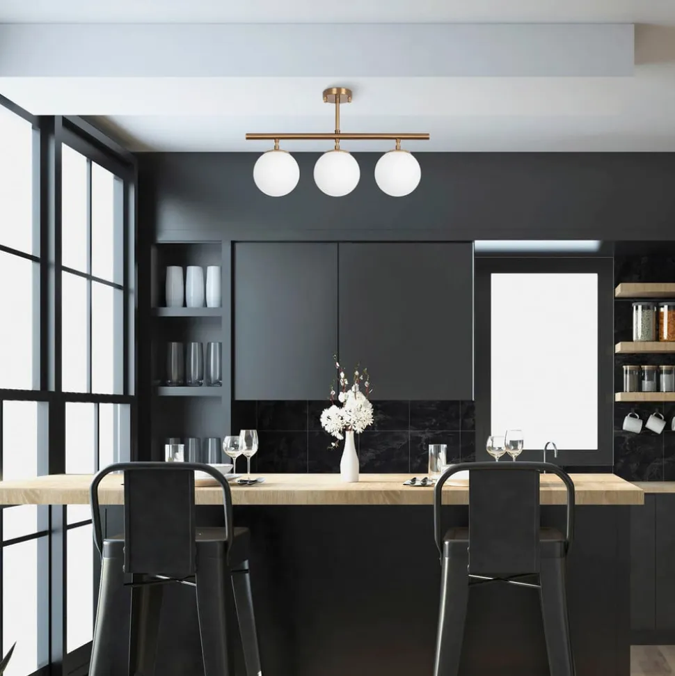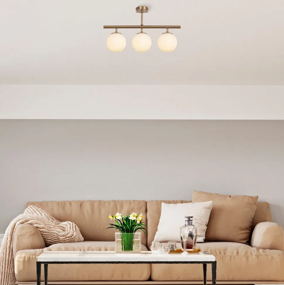 Glasloftlampen Atmaca i antik guld forener stilfuldt design med funktionel belysning. Det eksklusive materiale i glas og metal giver et flot look, der sætter prikken over i’et i ethvert rum. Konstruktionen med 3 lyskilder giver en jævn belysning, der skaber en behagelig atmosfære i både stuen, spisestuen og entreen.