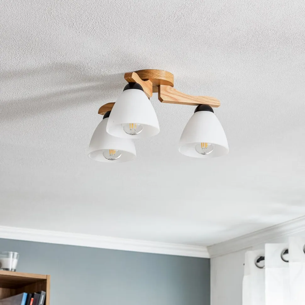 Loftlampen Haro forener moderne skandinavisk design med den naturlige skønhed af træ og glas. Konstruktionen med 3 lyskilder i lyst egetræ og hvidt sikrer en harmonisk lysfordeling i stuer, soveværelser og spisestuer. Muligheden for at dæmpe lyset via en ekstern dæmper giver fleksibilitet i lysdesignet, så du kan skabe den ønskede atmosfære.