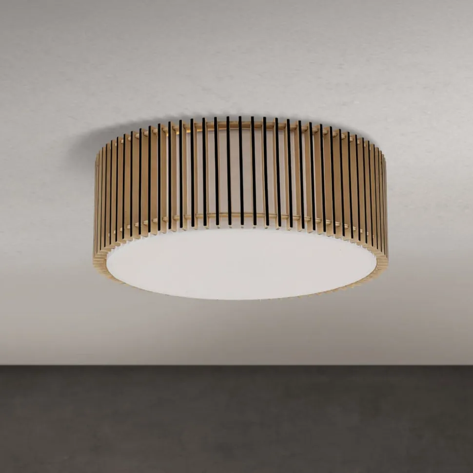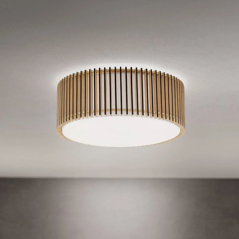 Loftlampe Tarta med skærm i krydsfiner og tekstildiffusor