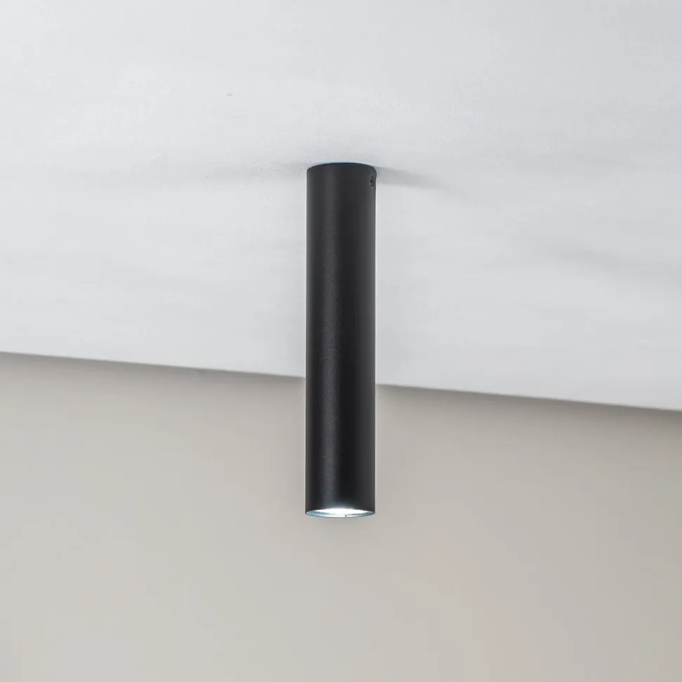 Loftlampen Tube i cylinderform forener moderne design med funktionel fleksibilitet. Den er fremstillet af højkvalitetsstål og holdt i elegant sort, så den passer perfekt ind i forskellige rumkoncepter, hvad enten det er i stuen, køkkenet, gangen eller spisestuen. Den klare cylinderform giver lampen en tidløs æstetik, der sætter accenter i både minimalistiske og krævende interiører.