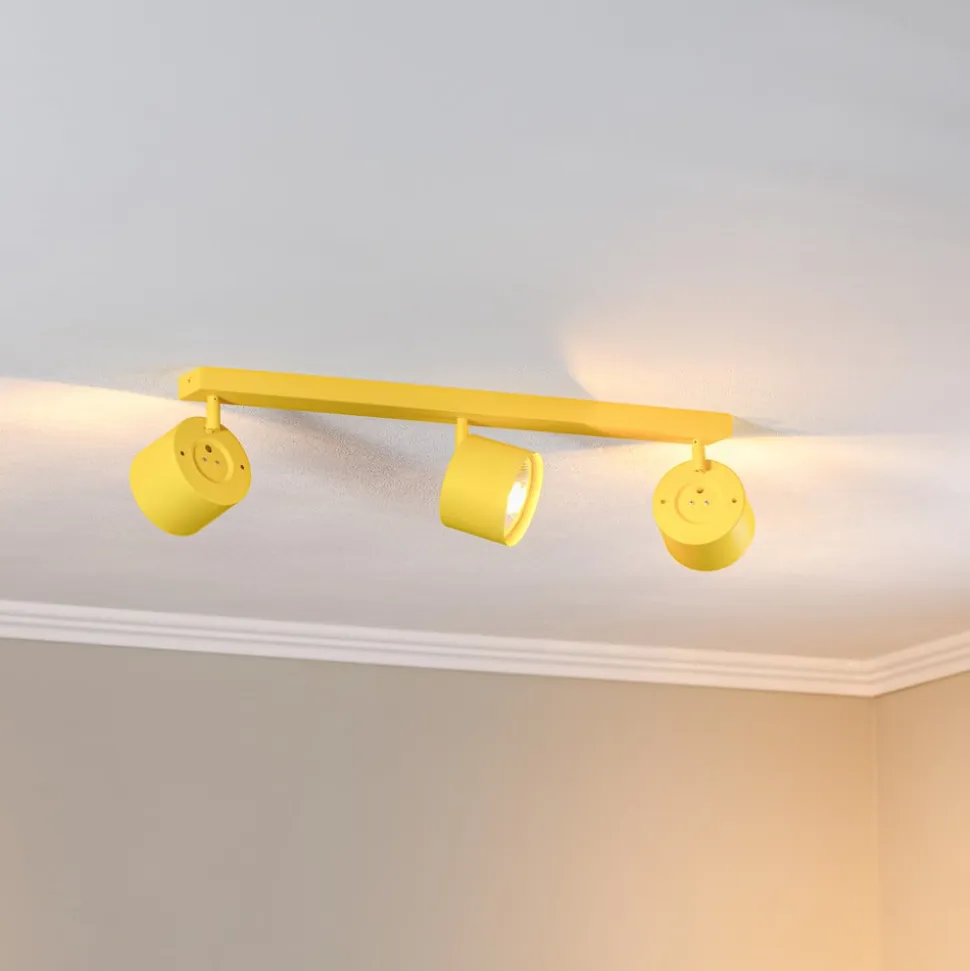 Loftspot Chloe kombinerer moderne design med høj funktionalitet. Fremstillet af robust stål og i en livlig gul farve sætter denne spot med 3 lyskilder stilfulde accenter i ethvert rum. De justerbare lampehoveder muliggør målrettet belysning, der er ideel til stuer, soveværelser og børneværelser samt køkkener og entreer.