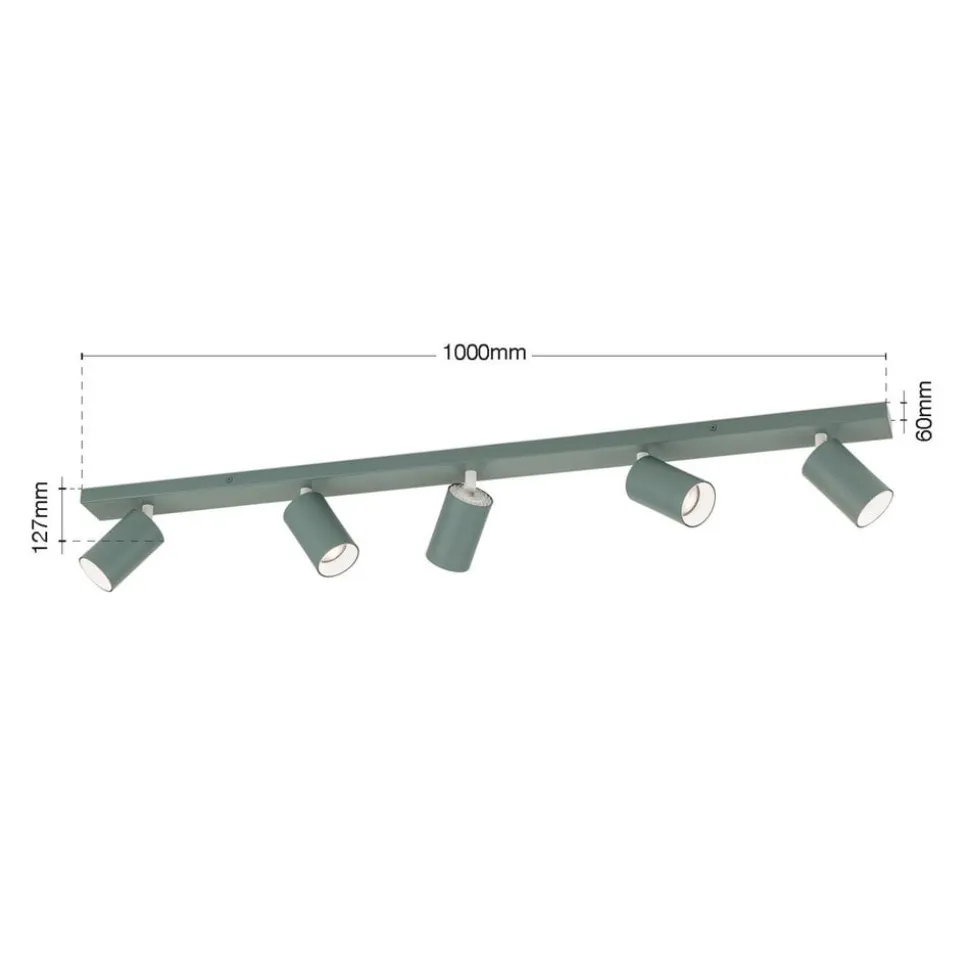 Moderne, farverig og samtidig minimalistisk – det er det, der gør loftspot Sean med 5 lyskilder til det, den er. Nemlig et kompromisløst, tidssvarende lysobjekt med karakter, der sætter et farvestænk i ethvert rum. Spotlighten afgiver rettet lys og er med sine fem justerbare spots meget velegnet til zoneoplysning i mange rum. Med sit slanke design passer denne minimalistiske lampe lige så godt i stuer og soveværelser som i køkkener eller entreer. Stativet er lavet af stål, og spotsene er af aluminium. De kan justeres individuelt, f.eks. til belysning af bordflader, billeder eller hylder. Spotlisten kan monteres både på loftet og på en væg, vandret eller lodret. GU10-fatningerne i spots kan udstyres med pærer på op til 13 watt (LED).