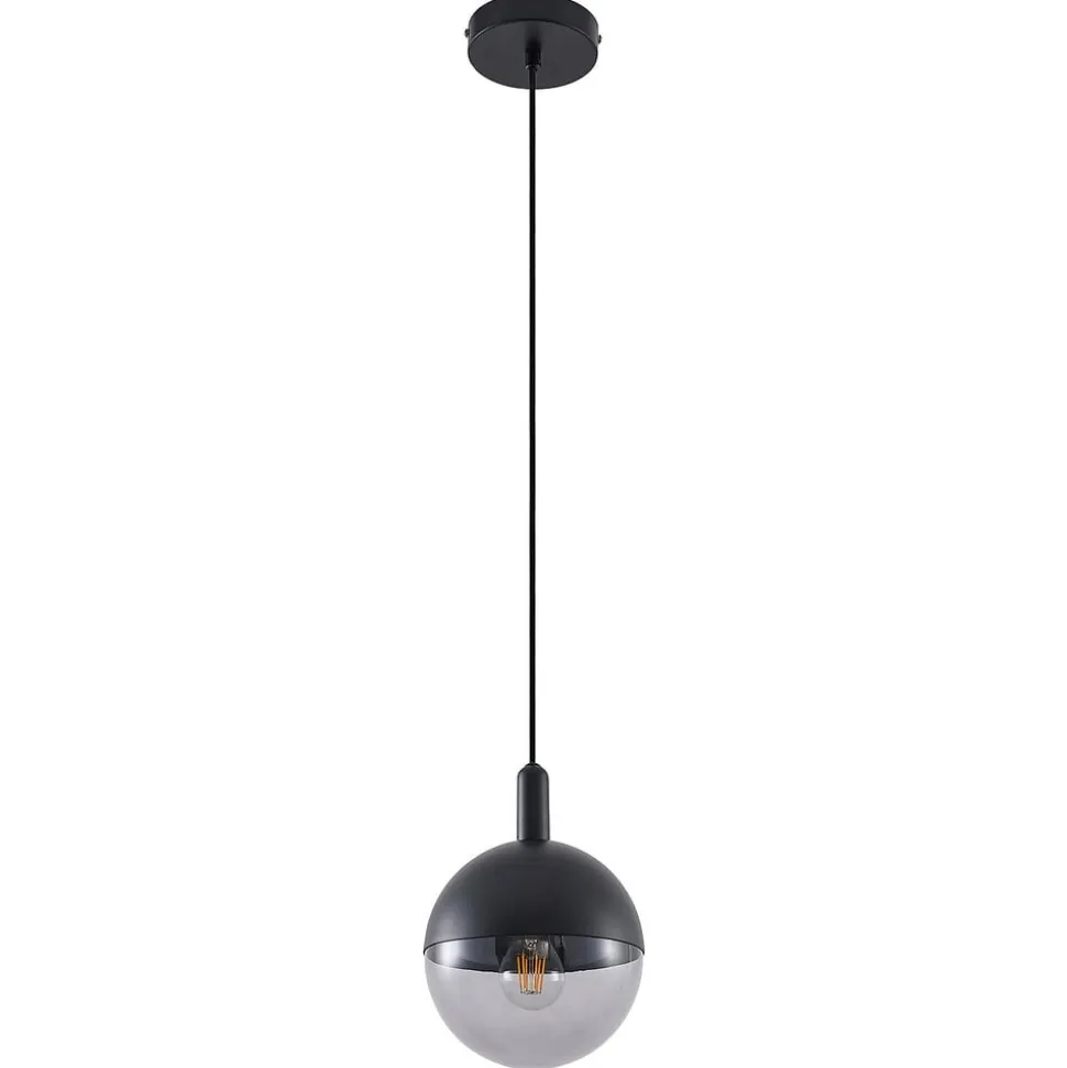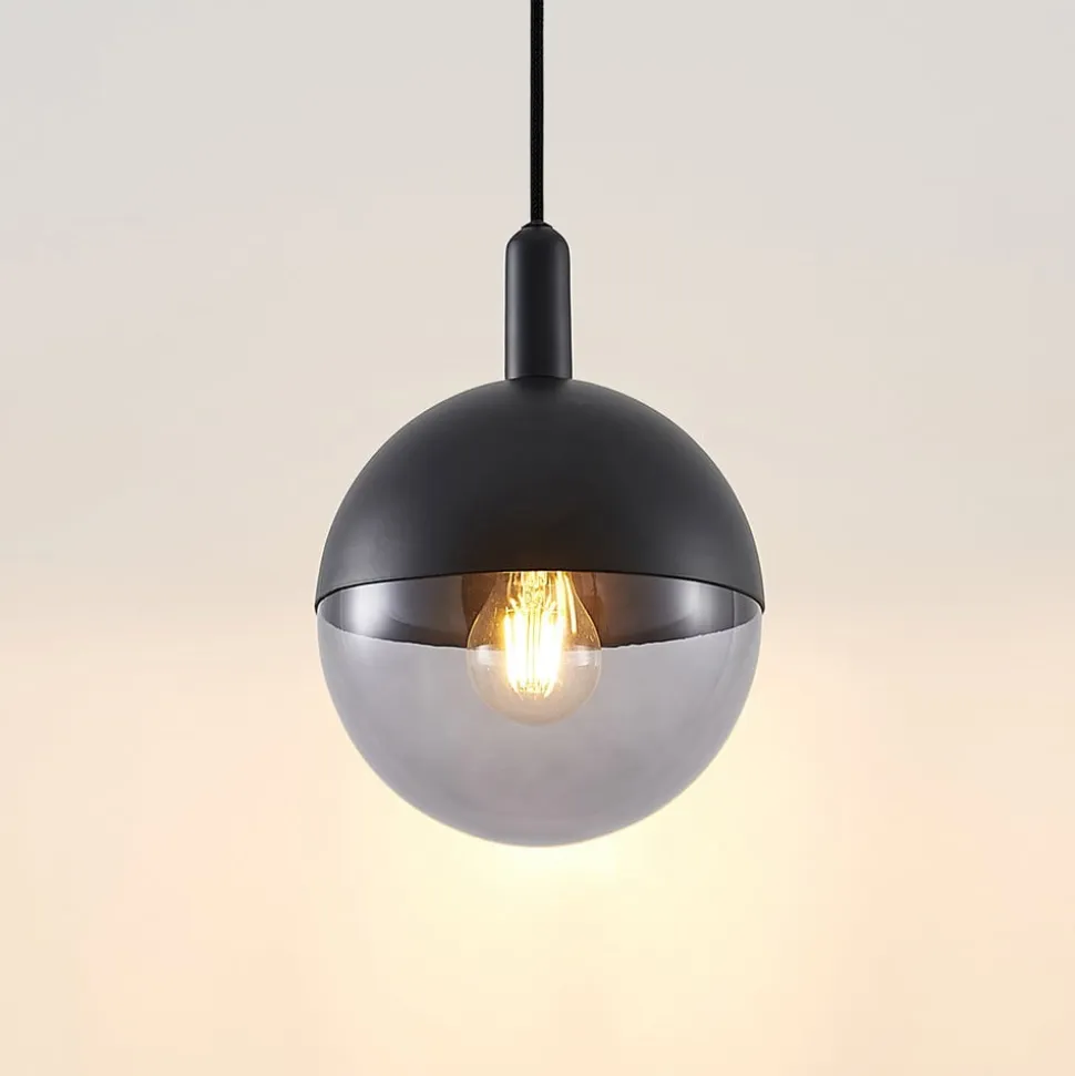 Rund pendellampe Dustian i ekstravagant design i sort metal og glas