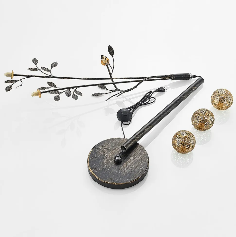 Evory gulvlampe imponerer med sit blomstrede look Evory er en 3 lyskilder gulvlampe lavet af metal. Den består af en robust base med tre metalstænger. Disse stænger er dekoreret med fine blade og ender hver i en kugleformet lampeskærm med filigranmønstre. Det giver ikke kun et smukt helhedsindtryk, men også et godt lysindfald. Det gør Evory til den perfekte tilføjelse til en stue.