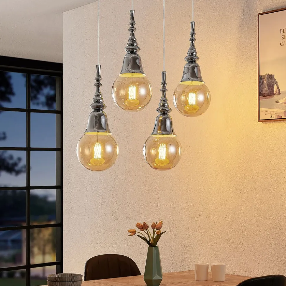 Spisestue vedhæng Gesja i fire-flammig version uden lampeskærme, forkromet