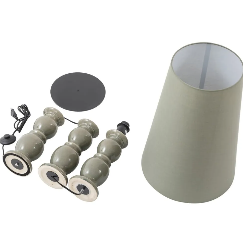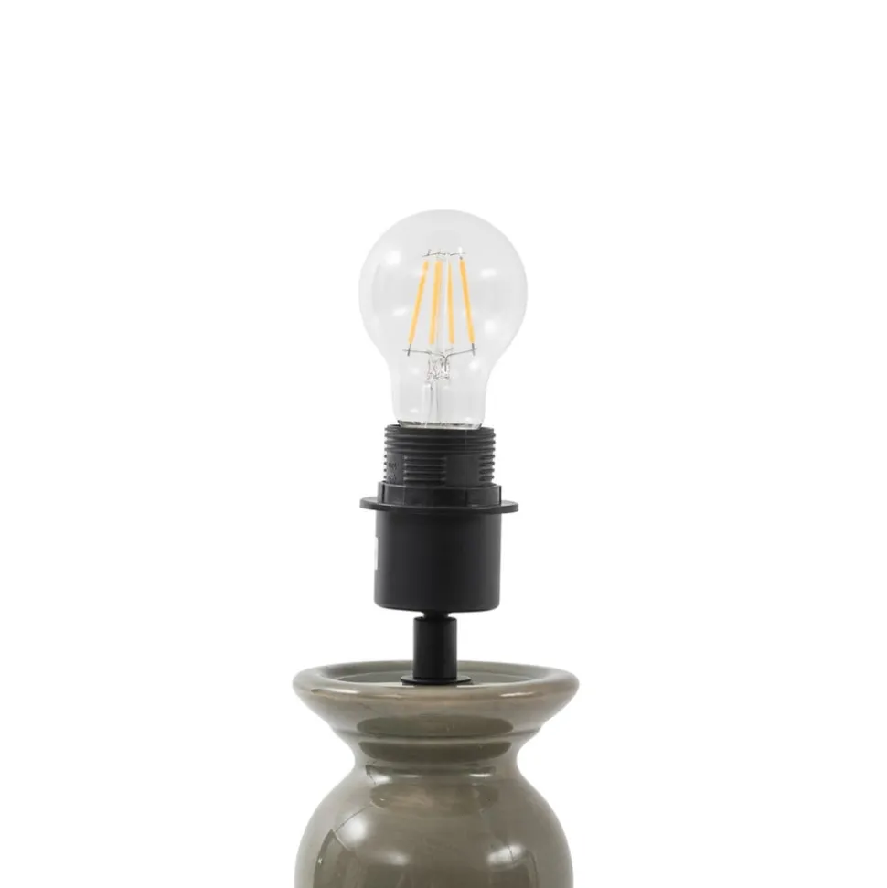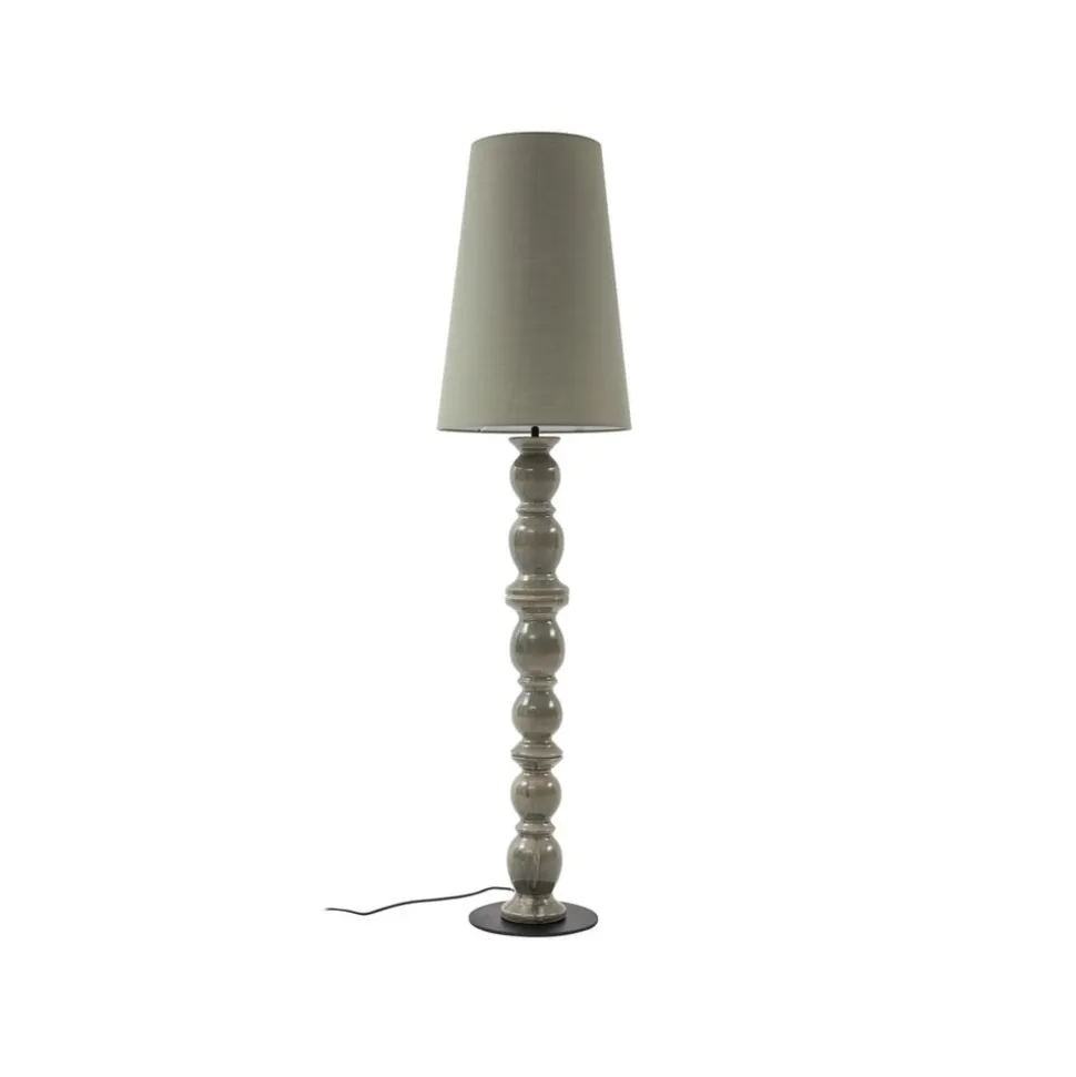 Lyndorin gulvlampe med tekstilskærm og keramisk fod