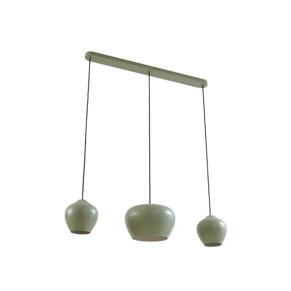 Lucande hængelampe Malisa, grøn, 3 lyskilder, metal, længde 90 cm