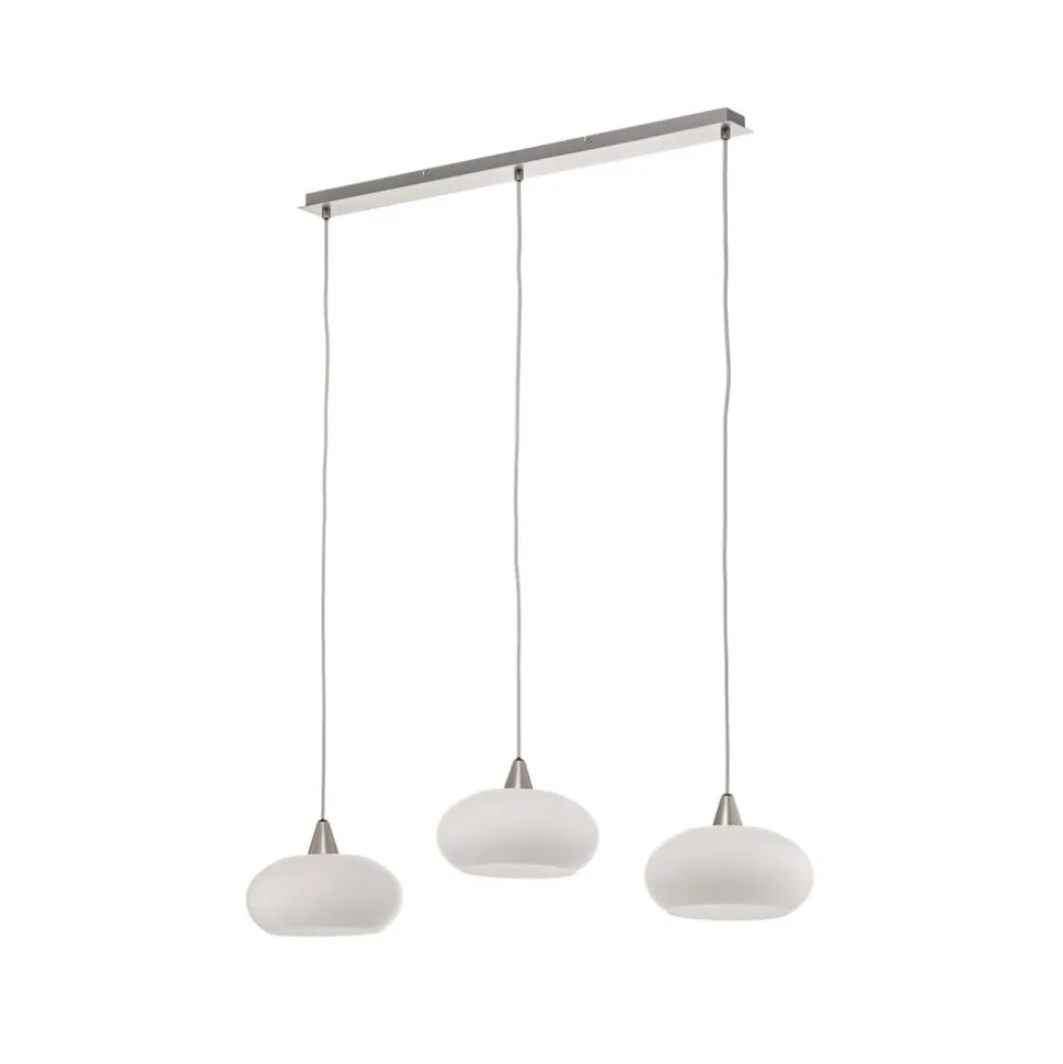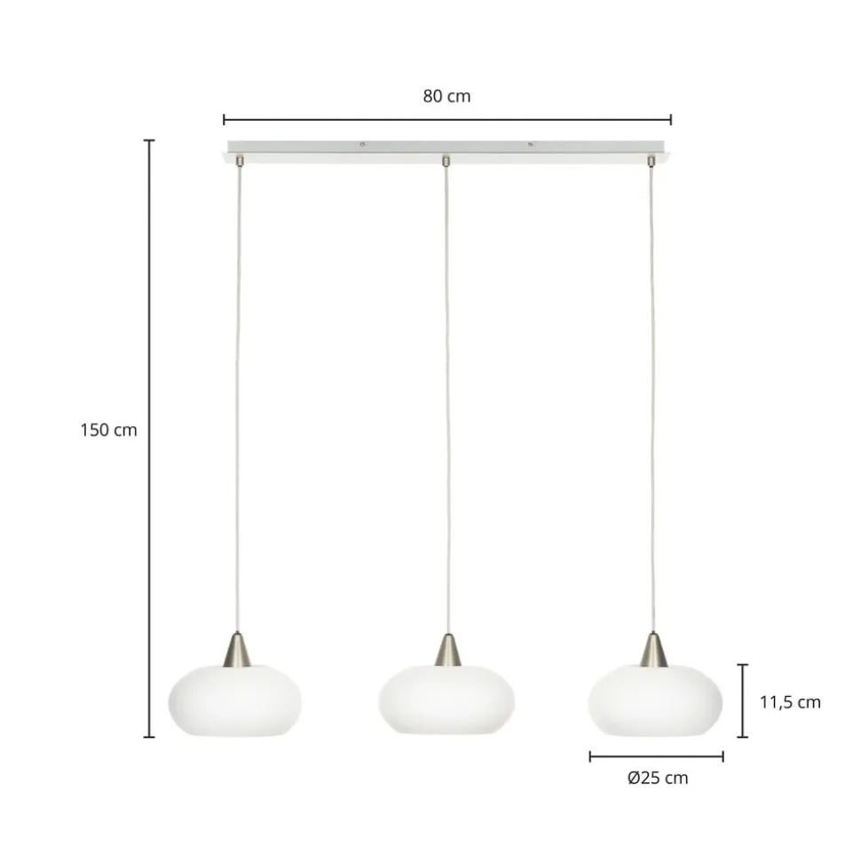 Sharvil 3 lyskilder pendellampe i opalhvid og nikkel – perfekt til spisebordet Den smukt designede Sharvil pendellampe er perfekt til dine fire vægge. Lyset kan dæmpes ved hjælp af en ekstern lysdæmper (medfølger ikke) eller en dæmpbar lyskilde. Uanset om det er i spisestuen eller stuen – denne hængelampe har også en plads i dit hjem. I Lucande-mærkekvalitet står denne lampe i moderne stil, designet af Ingo Thiele, for vellykket design og en overbevisende atmosfære. Sharvil-modellen er egnet til brug med lyskilder med E27-fatning, kommer i en imponerende nikkelfarve og kan også bruges som dekoration, når den er slukket.