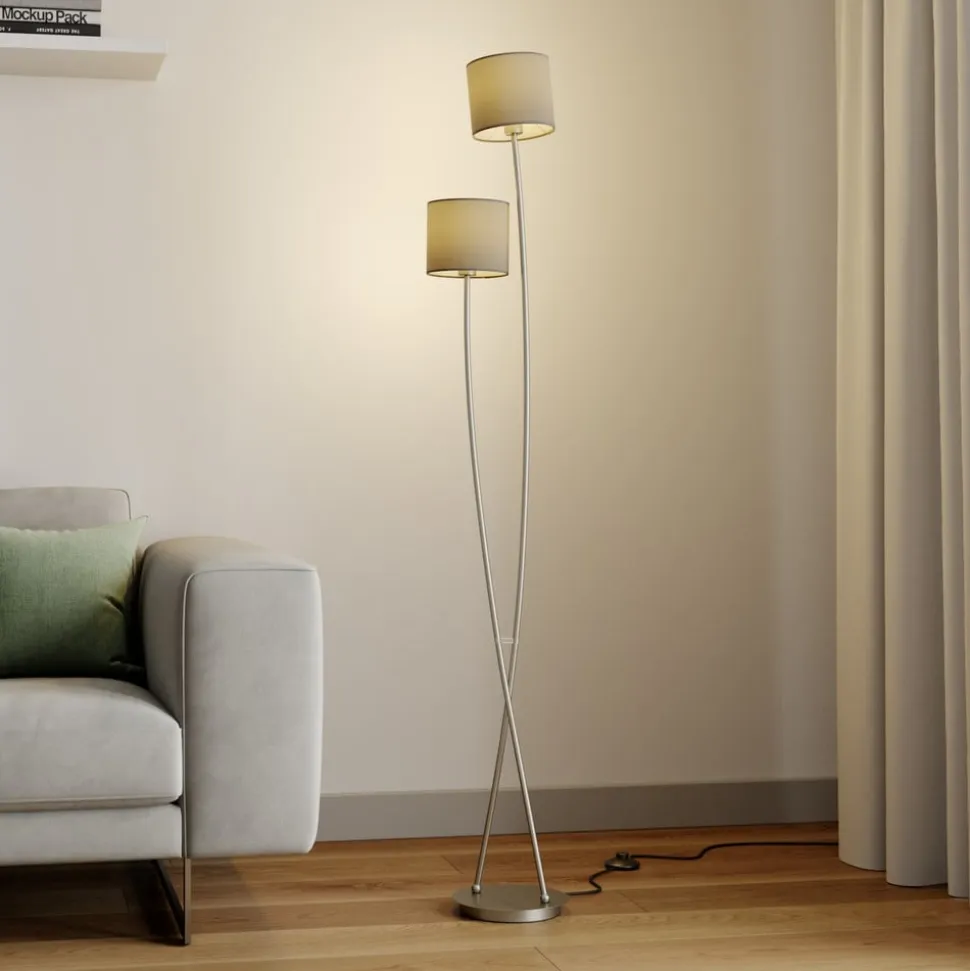 Elegant belysning af stuen med stof-standerlampen Juljana med 2 lyskilder