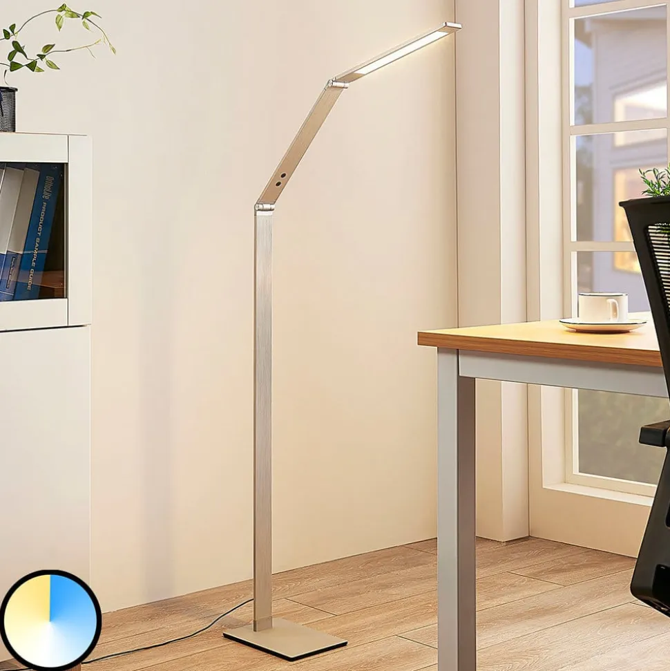 Puristisk LED-læselampe Nicano med justerbare elementer og skiftende lysfarve Nicano er en LED-gulvlampe med et umiskendeligt moderne, minimalistisk look, der passer godt ind i den puristiske boligstil. Den er ideel som læselampe, når den placeres bag eller ved siden af en sofa eller andre siddepladser. Her er det en fordel, at lysets retning kan bestemmes individuelt ved hjælp af to led, og det er også muligt at ændre både lysfarve og lysstyrke. Dette er muligt i fire trin ved hjælp af to berøringskontakter.