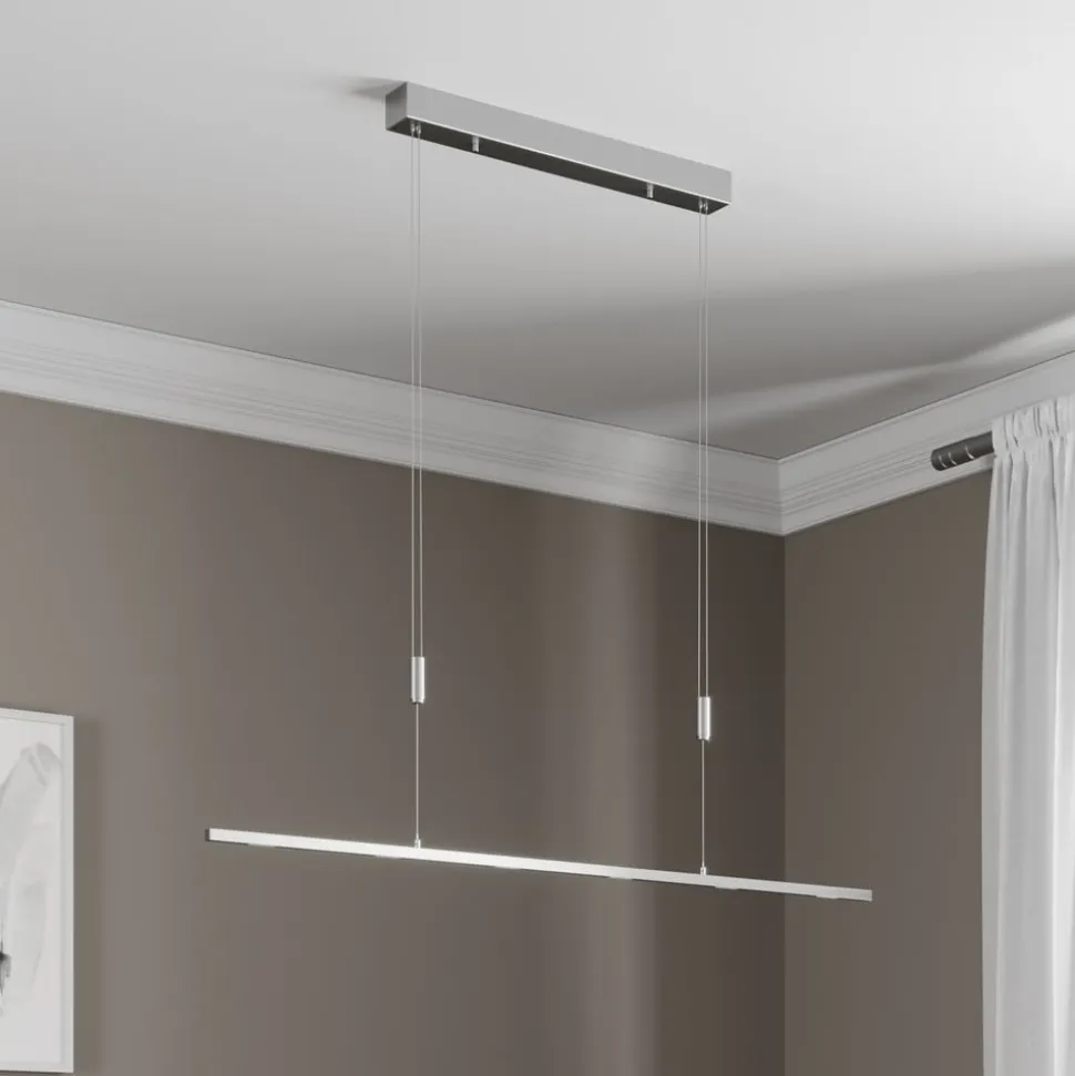 Lucande LED-hængelampe Arnik, 120 cm, nikkelfarvet, dæmpbar