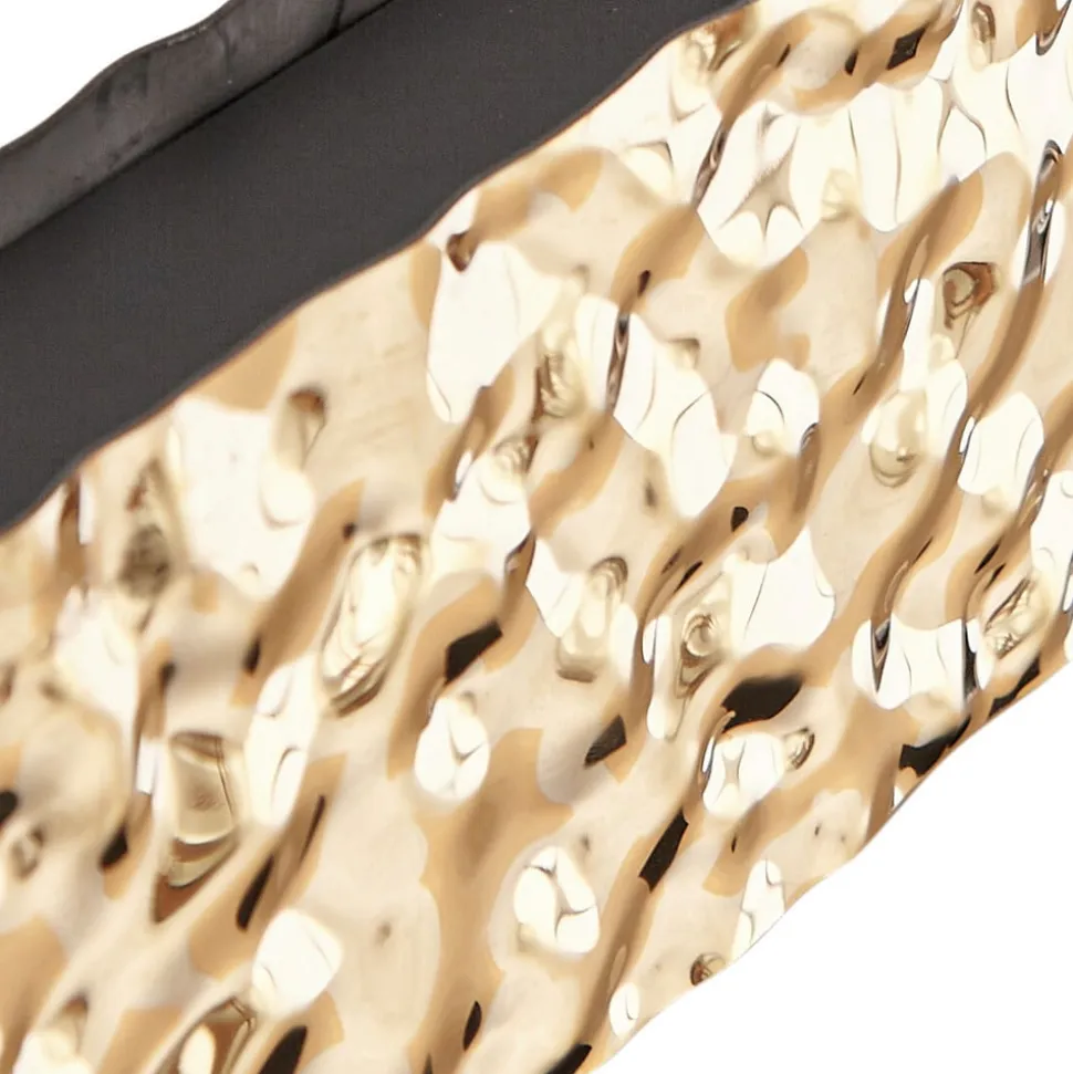 LED-hængelampen Nivara forener moderne design med funktionel belysning. Lampen er fremstillet af metal og silikone og præsenterer sig i en stilfuld kombination af bølget guld og sort. De fastmonterede LED’er sikrer en jævn og energibesparende belysning, der er ideel til stuen og spisestuen. Med en varmhvid lysfarve på 3.000 K skaber denne lampe en indbydende atmosfære, der både er afslappende og inspirerende.