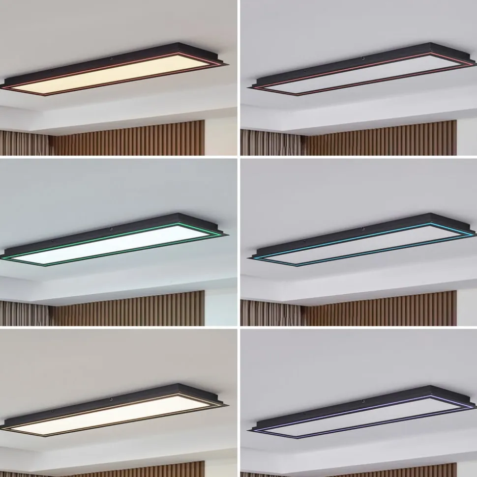Rektangulær loftlampe Leicy med CCT- og RGB-funktion Denne smukt designede loftlampe vil lyse dit interiør op. Loftlampen kan nemt tændes og slukkes ved hjælp af en fjernbetjening og giver dig mulighed for at justere lysstyrken efter eget ønske ved hjælp af en fjernbetjening. Den har en farveskiftfunktion, der giver dig mulighed for at justere lysfarven, så den passer til dine behov. Det enestående udseende giver mange anvendelses- og kombinationsmuligheder og kan nemt integreres i dine rum. I Lucande-mærkets kvalitet imponerer den sorte lampe med sit smagfulde design og unikke følelse. Den skaber en vidunderlig atmosfære og er særlig effektiv i dit område. Takket være sit enestående udseende harmonerer lampen med næsten ethvert interiør og skaber en god atmosfære. Lad dit opholdsrum stråle i ny pragt – inkl. fjernbetjening – RGB-funktion – CCT-funktion (2.700 K – 6.500K)