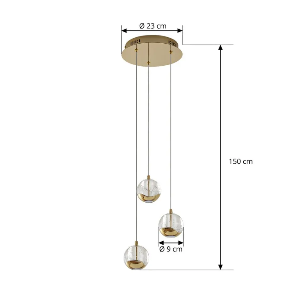 Lucande LED-pendellampe Hayley, Ø 25 cm, 3 lyskilder, guld, glas
