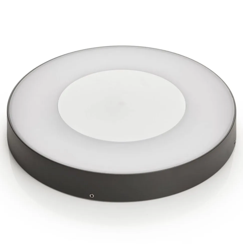 Den elegante LED udendørs loftlampe Sora forsyner også udendørsarealer med klart lys og kan nemt installeres på overdækninger. En intelligent sensor, det moderne design og de robuste materialer gør den til en harmonisk belysningsløsning.