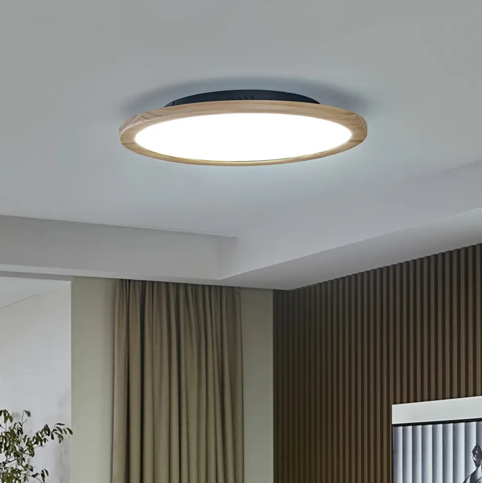 Lucande loftlampe Joren, Ø 48 cm, træ, CCT, fjernbetjening