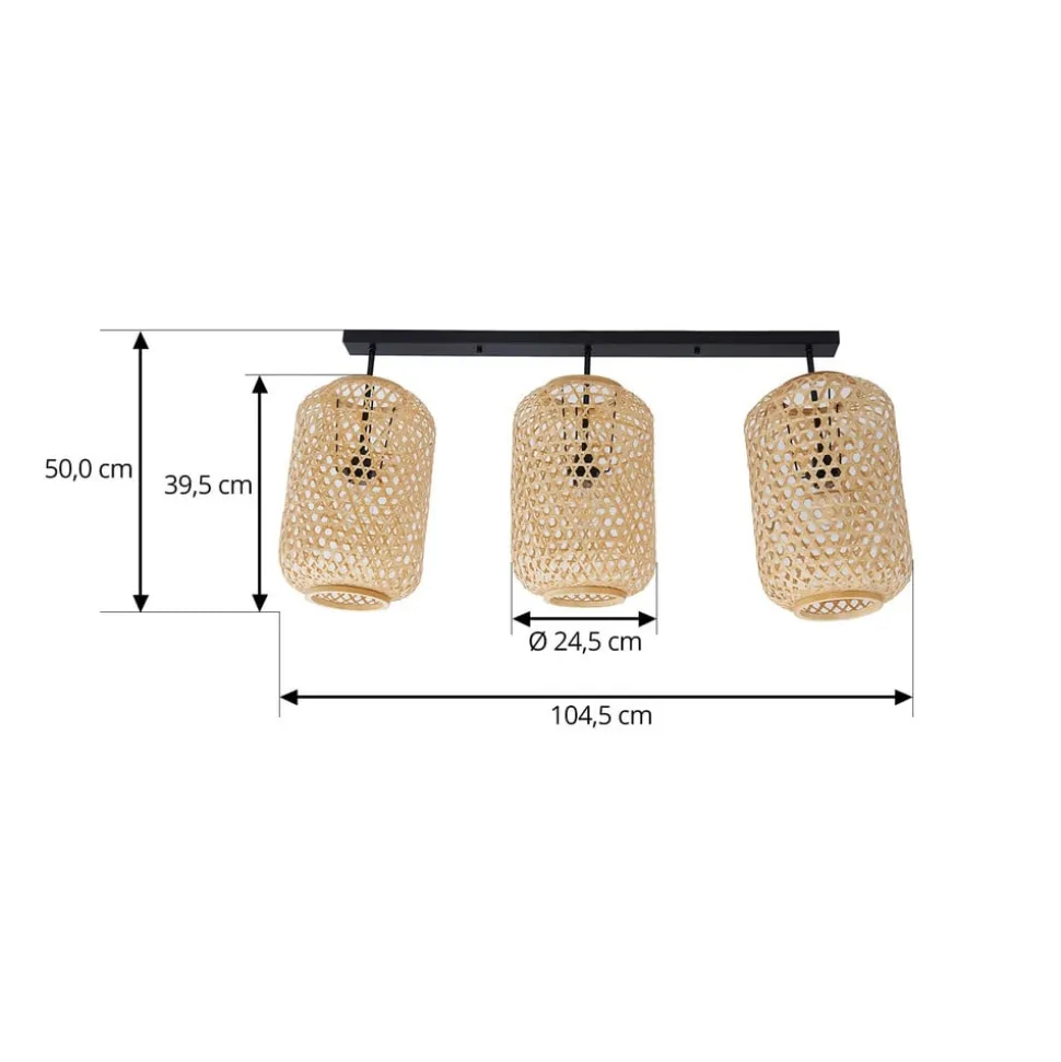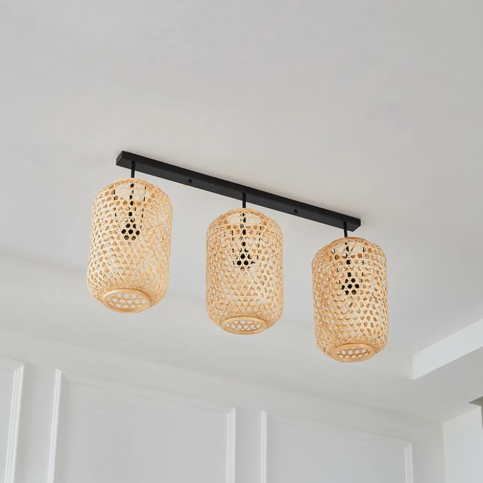 Lucande loftlampe Jorick, 3 lyskilder, længde 104,5 cm, bambus