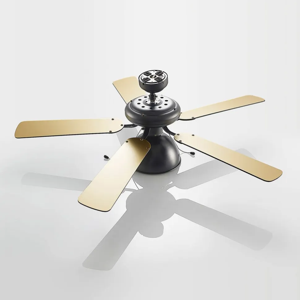Klassisk loftsventilator Shamoian af stål og træ i markant farvekombination