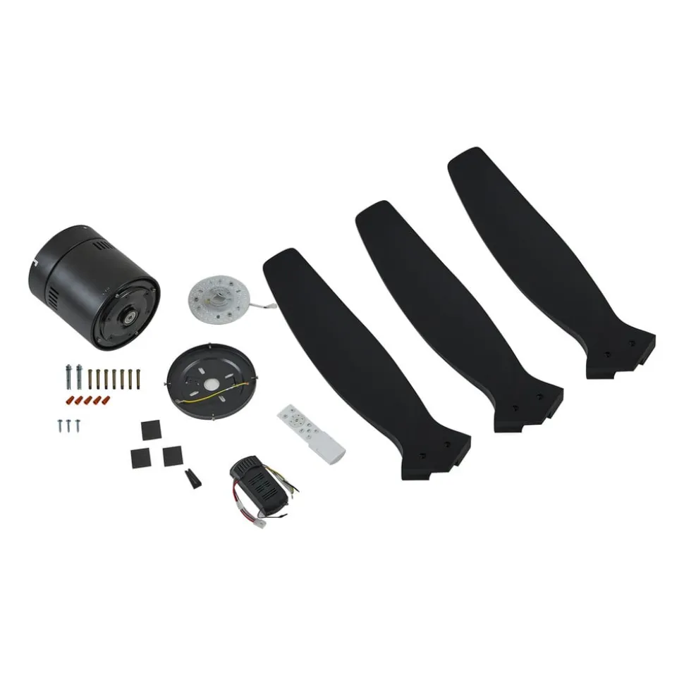 Sort Vindur-loftventilator med fjernbetjening Vindur-loftventilatoren er udstyret med tre trævinger. De er smukt designet og holdt i en ensartet sort farve. Den integrerede frem- og tilbageløbsfunktion gør det muligt at bruge ventilatoren både sommer og vinter. Den medfølgende fjernbetjening giver dig mulighed for at indstille en timer og regulere hastighedsniveauet. Den integrerede DC-motor garanterer desuden en støjsvag drift. Tekniske detaljer Effekt pr. hastighed: – 40 watt ved 200 o/min – 11,8 watt ved 139 o/min – 4 watt ved 80 o/min – Maksimal volumenstrøm: 170 m³/min – Maksimal lufthastighed: 2,75 m/sek – Ventilatorens lydeffektniveau: 47 dB (A) – Serviceværdi (SV): 4,88 (m³/min)/W – Fjernbetjeningen kræver 2 x AAA NiCa-batterier