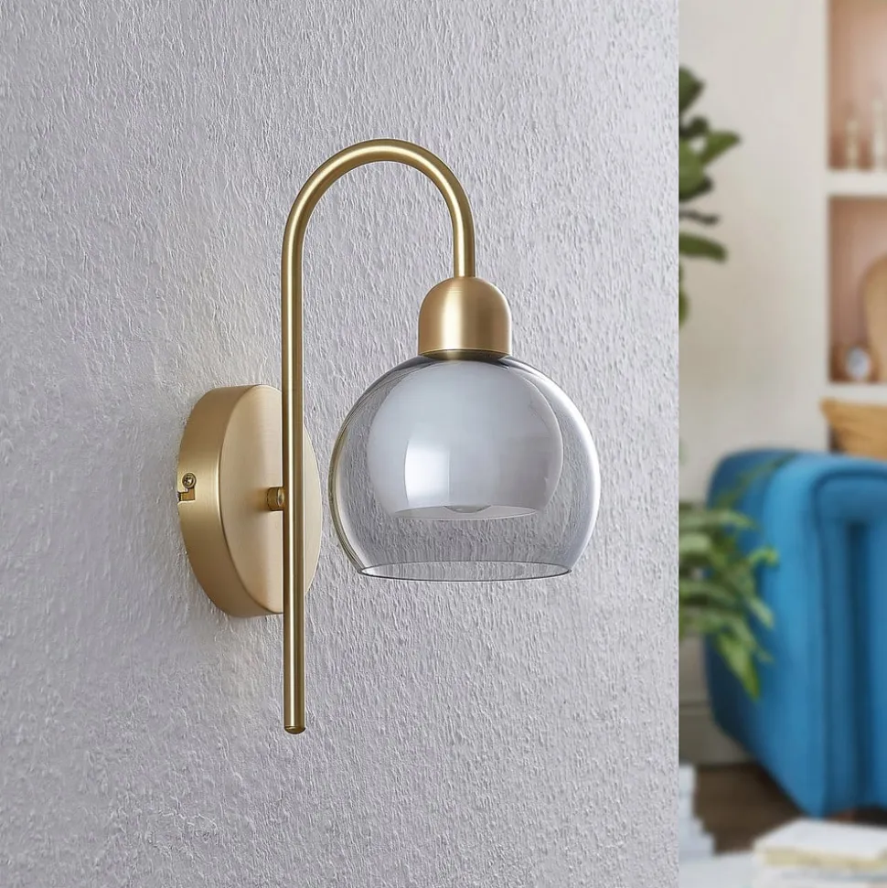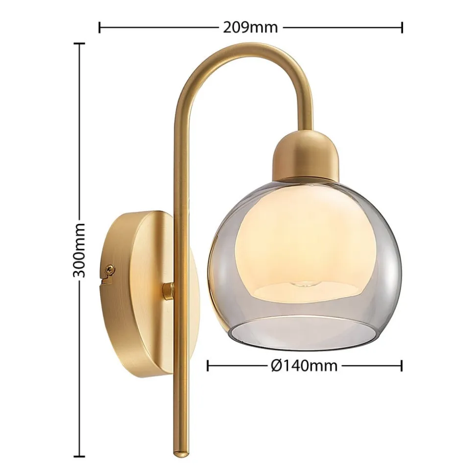 Lucande Mylah væglampe med glasskærm, messing