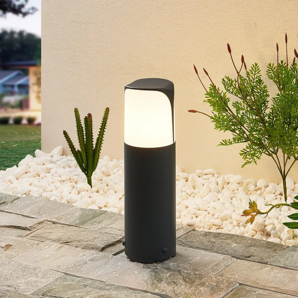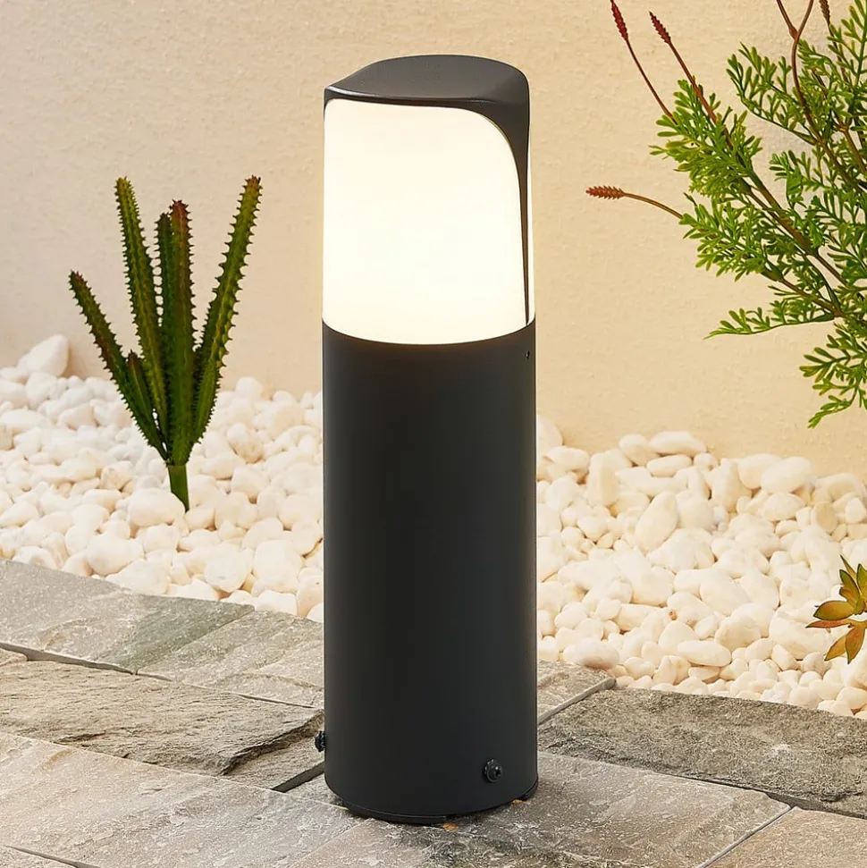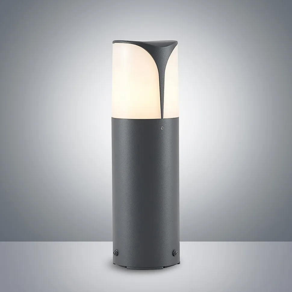 Moderne design – Paikea sokkellampe Mørkegråt aluminium er her smart kombineret med en opalhvid diffusor for at skabe den elegante form på den moderne Paikea sokkellampe. Paikea er velegnet til brug i alle udendørs områder omkring huset og oplyser trapper, små vægge, terrasseområder eller endda indgangen til huset.