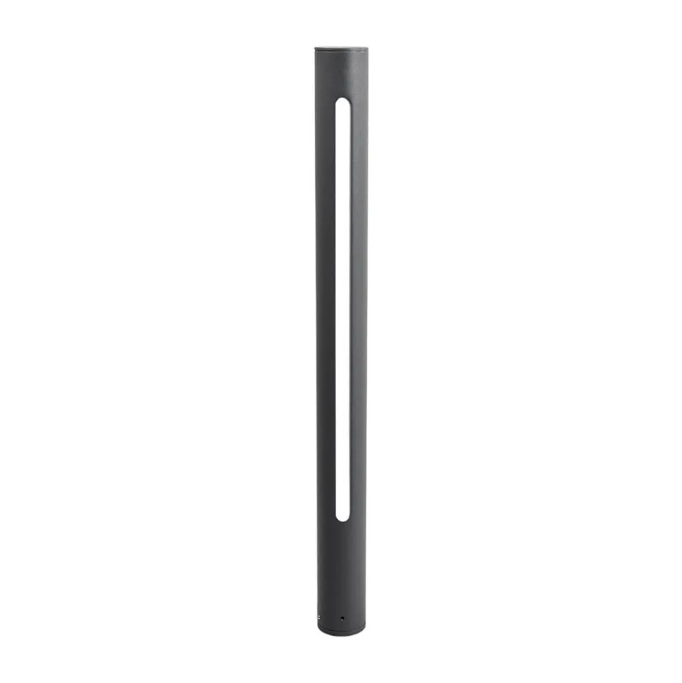 Smal Tomas LED-vejlampe med dekorative lysbånd og mørkegrå overflade Denne LED-vejlampe har en rund, cylindrisk form og kan nemt integreres i moderne områder, hvor den f.eks. lyser indkørsler og havestier godt op, så du har et behageligt lys og nemt kan finde vej, selv når det er mørkt. LED’erne bruger meget lidt strøm, hvilket selvfølgelig er i tråd med moderne ideer, så du kan beskytte din tegnebog og miljøet.