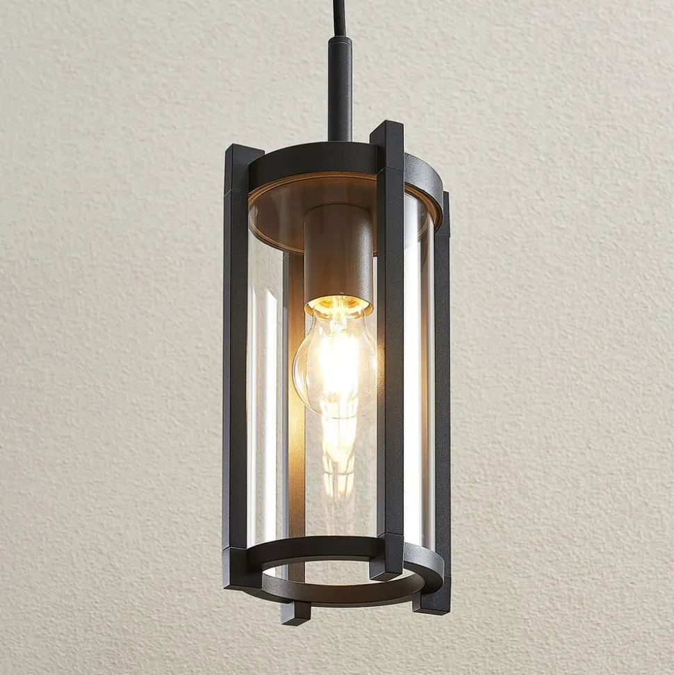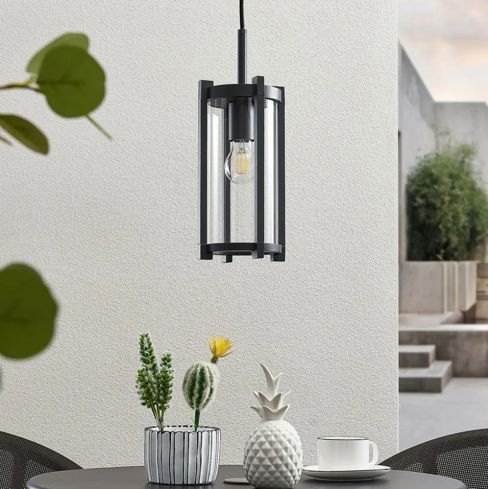 Den udendørs hængelampe Brienne skaber en stilfuld atmosfære Brienne-pendlen er et elegant tilbehør til en overdækket terrasse eller veranda og indbyder til socialt samvær i en stilfuld atmosfære. Brienne er udstyret med en cylinderformet glasskærm, som er sat ind i en aluminiumsramme. Pæren er synlig gennem det gennemsigtige glas, så det har en betydelig indflydelse på armaturets udseende. Den mørkegrå farve giver armaturet en tidløs elegance, der kan kombineres med forskellige arkitektoniske stilarter – til A60-lamper