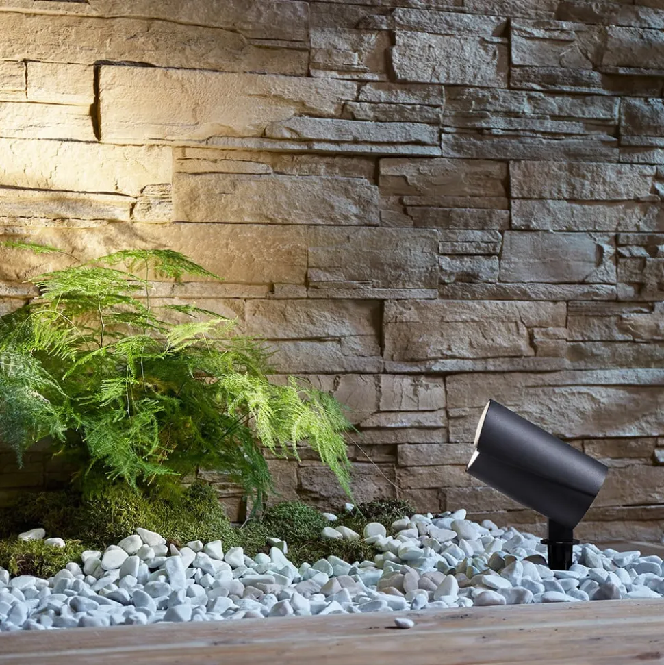 Mørkegrå Anton udendørs LED-spot i et moderne, enkelt design Anton udendørs LED-spot består af en base med et jordspyd, som den rundformede spotlight er forbundet med. Den kan placeres i en vilkårlig vinkel på 40°, så belysningen kan tilpasses fleksibelt til forholdene. Anton spotlight er lavet af aluminium og lyst hærdet glas i området omkring lyskildedækslet. Jordspyddet gør udendørs installation til en leg. Afhængigt af brugen er Anton LED-spotlight mærket med en kapslingsgrad på IP65, hvilket garanterer beskyttelse mod dårlige vejrforhold, støv eller snavset vand. Spotlightet kan bruges til en lang række formål, i haven, i indkørslen til huset eller i kommercielle områder.