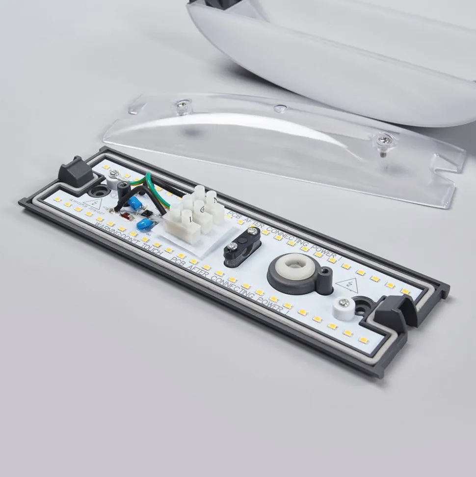 Elegant Akira udendørs LED-væglampe med varmhvid lysfarve Akira har et attraktivt udseende med lette kurver, der passer perfekt til moderne boligstile. Lyset fra de varmhvide LED’er sendes opad og nedad, og LED’erne er dækket af hvidt polycarbonat, så lyset fremstår mere ensartet. Beslaget eller dækslet, der udgør lampekroppen på den udendørs LED-væglampe, er lavet af mørkegråt trykstøbt aluminium.