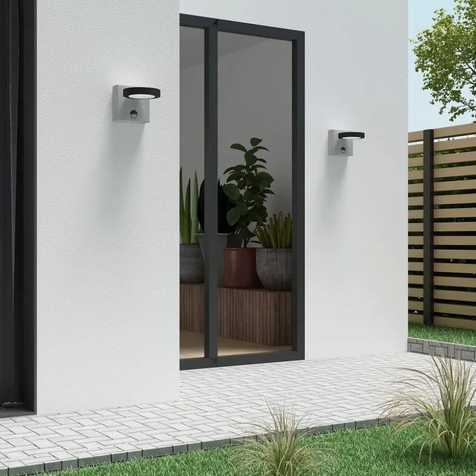 Bevægelsessensor udendørs LED-væglampe Belna med rundt lampehoved Belna imponerer med sit moderne look og sin indbyggede bevægelsessensor, som gør det muligt at tænde den udendørs væglampe, når det er nødvendigt, da lyset tændes, så snart der registreres bevægelse inden for rækkevidde.