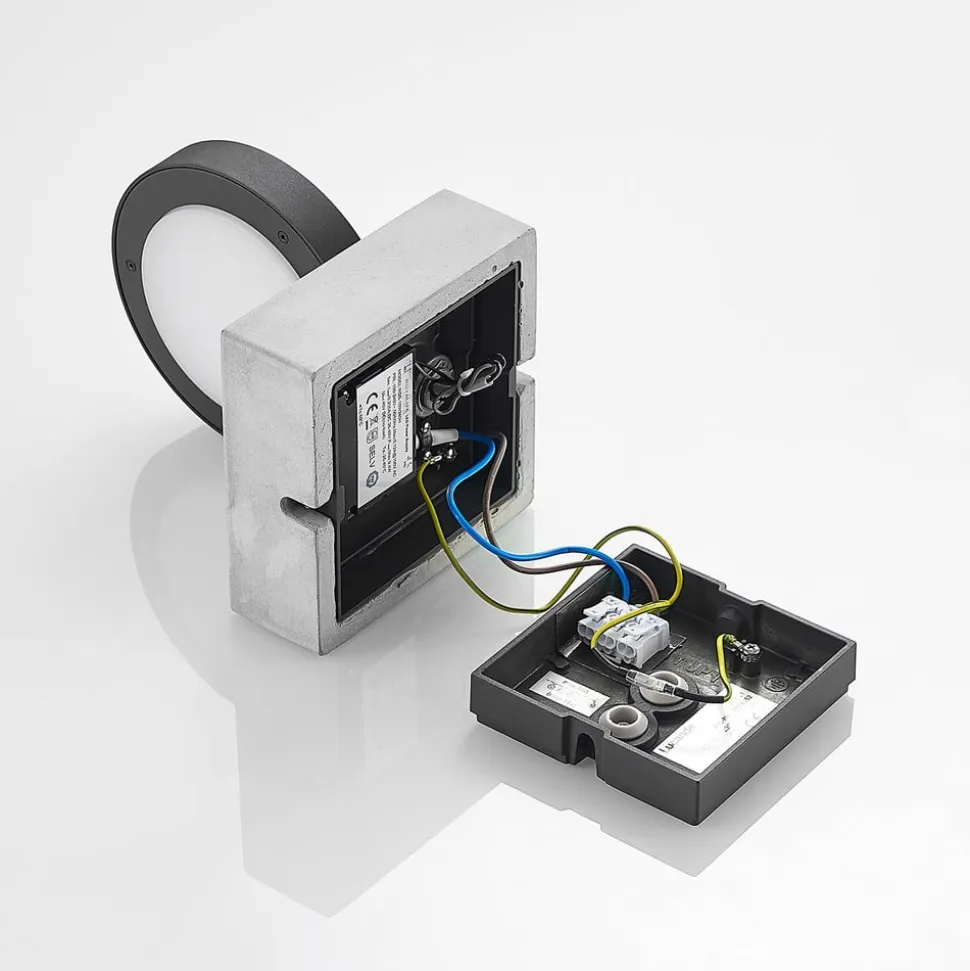 Vægbeslaget har et dæksel af beton, som ser meget trendy ud, det runde lampehoved er lavet af aluminium, farvet mørkegråt og har et diffusordæksel af hvid plast, så lyset fordeles blødt og jævnt. Sensordata: – Registreringsvinkel 120 grader – Rækkevidde 6 til 10 meter – Justerbar lysvarighed, 8 sekunder til 8 minutter – 5 til 2000 lux