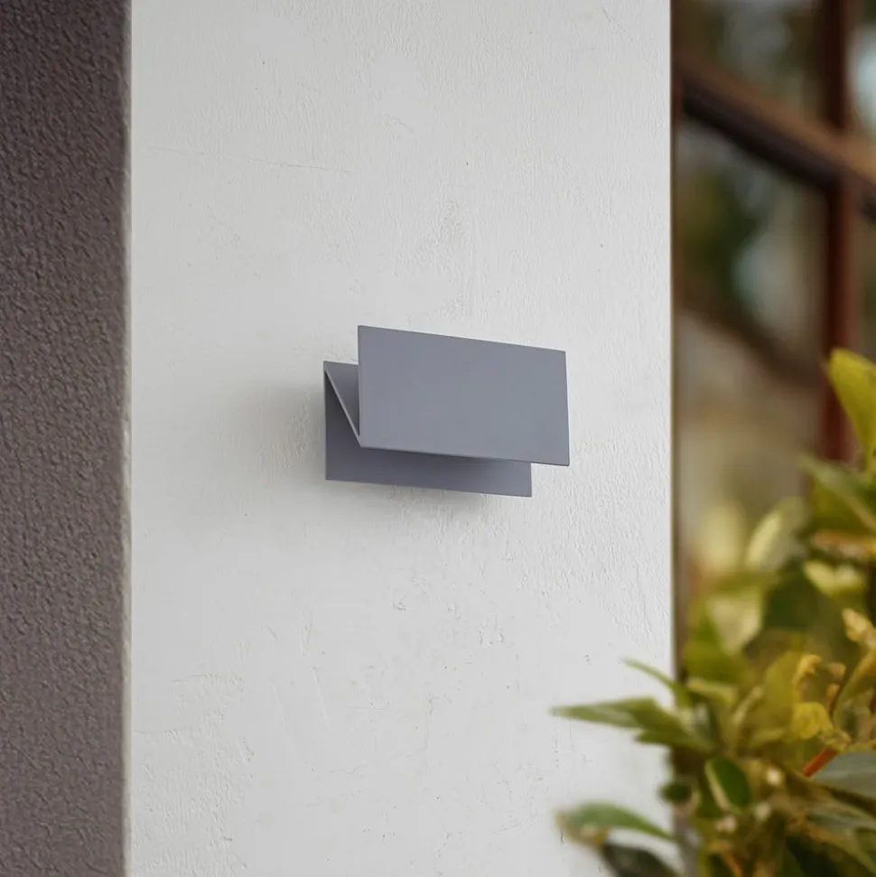 Grå udendørs LED-væglampe Meja med foldet look og kapslingsgrad IP54 Den udendørs LED-væglampe Meja kombinerer moderne design med høj funktionalitet og er specielt designet til udendørs brug. Med en kapslingsgrad på IP54 er den optimalt beskyttet mod støv og vandsprøjt, hvilket gør den til den ideelle belysningsløsning til altaner og terrasser. Den integrerede LED-lyskilde imponerer med sin energieffektivitet og giver langvarig belysning, der forbedrer både atmosfæren og synligheden i udendørs områder. Den grå aluminiumsoverflade passer perfekt ind i moderne arkitektoniske stilarter og understreger udendørsområdets æstetiske kvalitet. Med Meja udendørs væglampe bliver lyset et designelement, der ikke kun oplyser uderummet, men også understreger dets karakter.