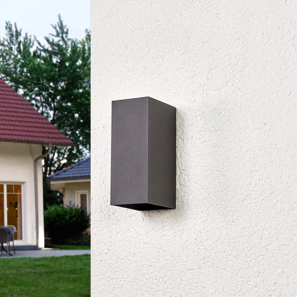 Lucande udendørs LED-væglampe Mikka, 17 cm, antracit, 2 lyskilder.