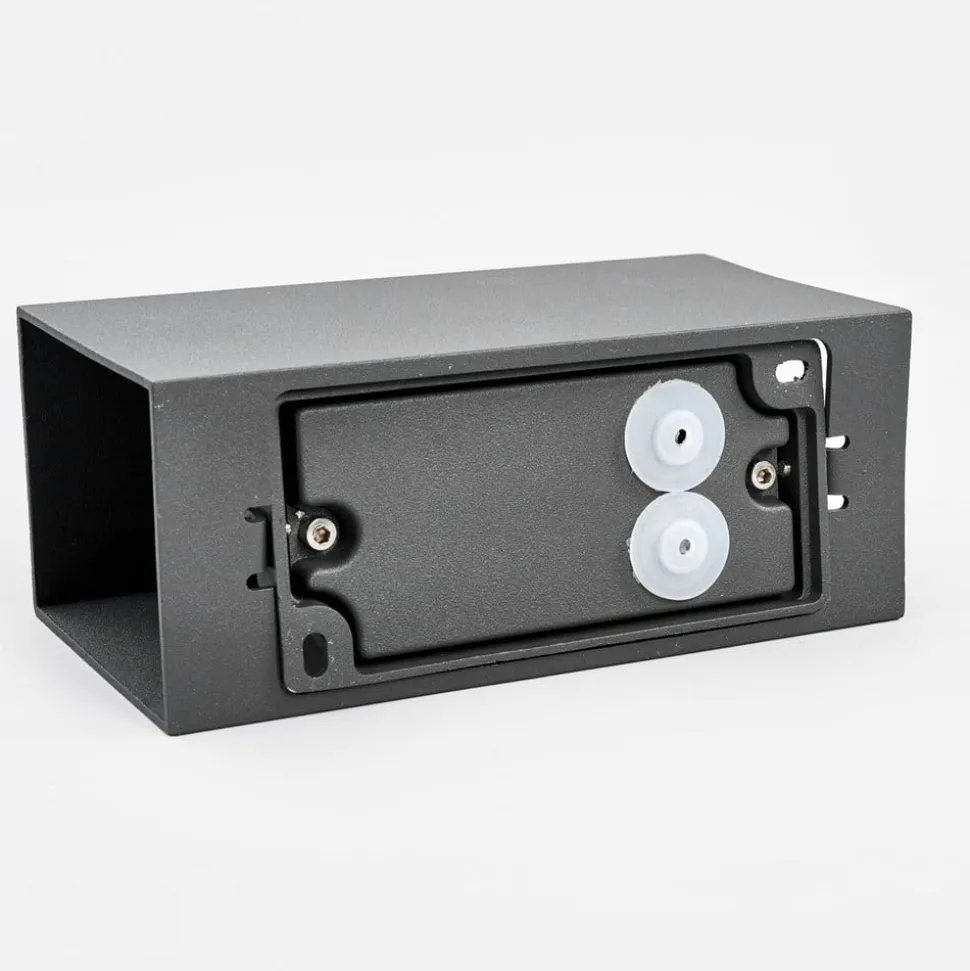 Mikka Mikka er en udendørs LED-væglampe med en enkel kubusform, der fanger øjet med sin dobbelte lysudsendelse. Lyset udsendes både opad og nedad i en attraktiv konisk form og danner en relativt klar silhuet på væggen, hvilket skaber en lyseffekt, der er let genkendelig på afstand og ser dekorativ ud. LED’erne sikrer god energieffektivitet: lav effekt kombineret med god lysstyrke.