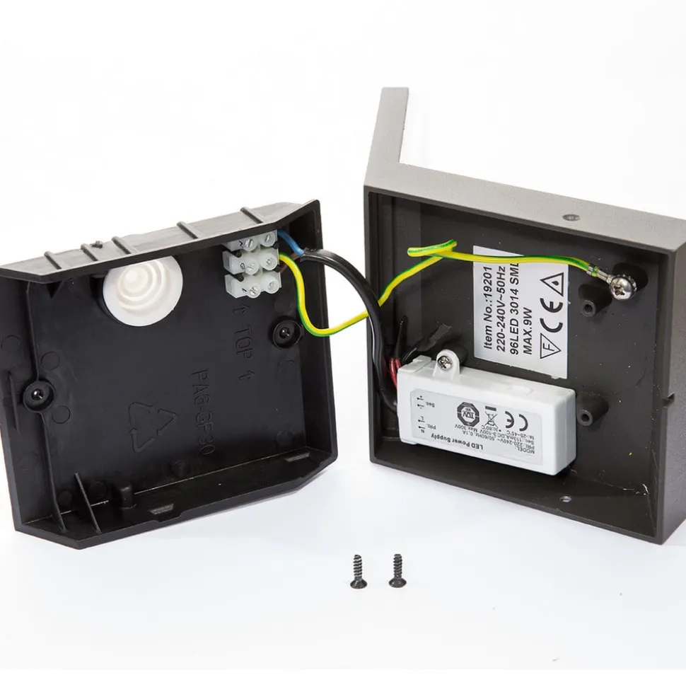 Nevio LED-væglampe med hældning nedad til moderne udendørs belysning Denne udendørs LED-væglampe udsender lys nedad, da det rektangulære lampehoved hælder mod jorden. Det passer perfekt til den rektangulære ramme og er på undersiden dækket af en hvid plastdiffusor, som skaber en ensartet og blændfri lyseffekt. De integrerede, varmhvide LED’er er et mærkevareprodukt fra Epistar og er ikke kun kendetegnet ved en lang levetid, men også ved høj energieffektivitet, hvilket er helt i tråd med moderne miljøbevidsthed – RAL 840-M