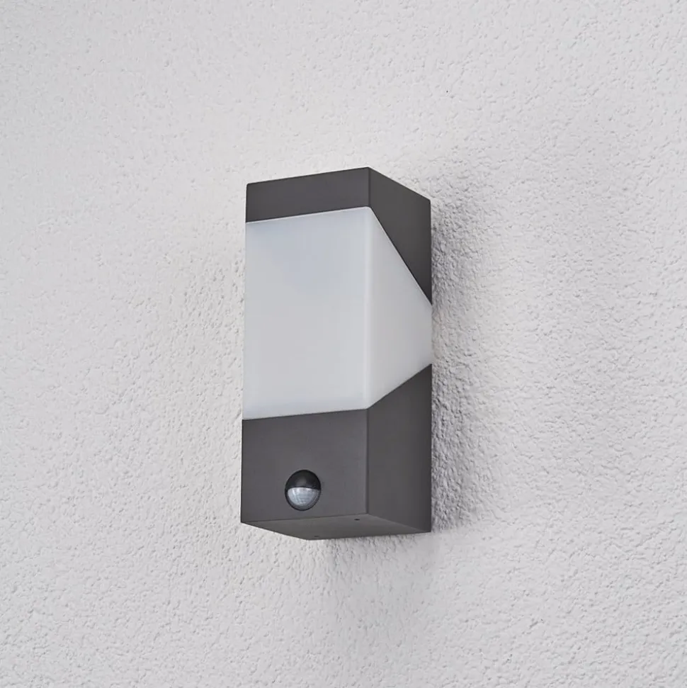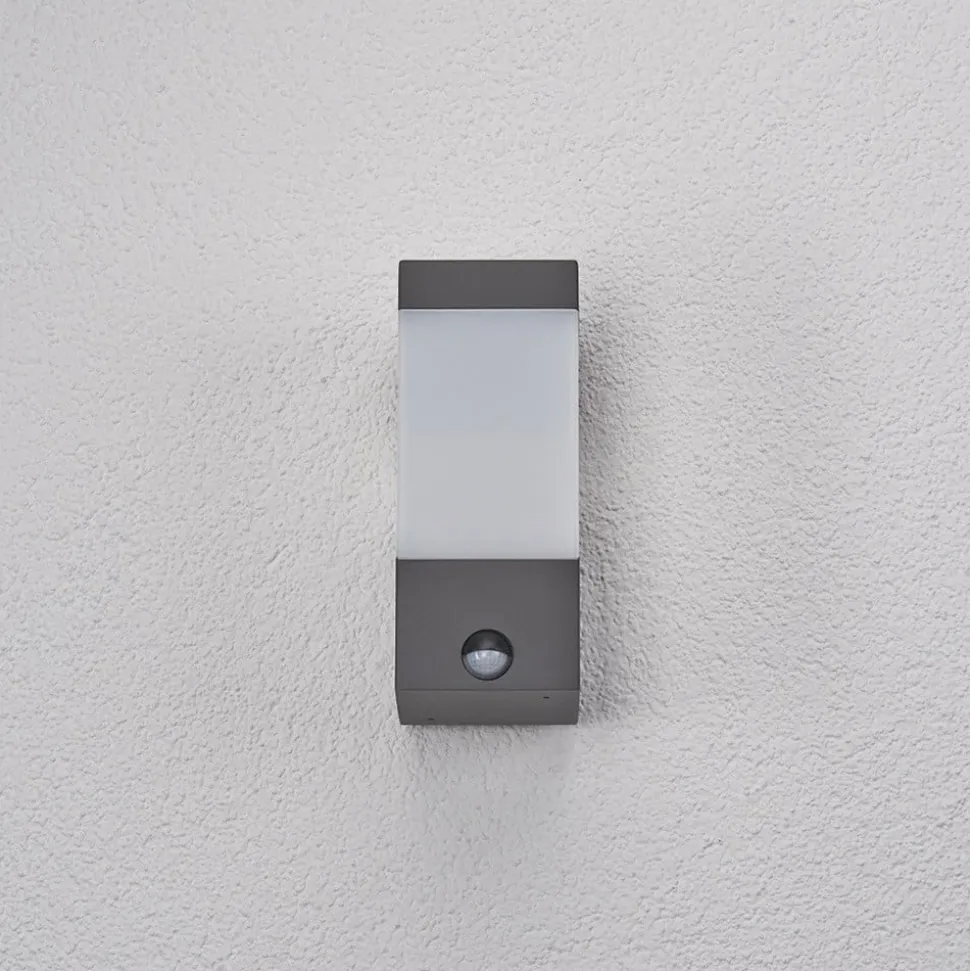Lucande udendørs væglampe Kiran, sensor, grå, IP44, E27