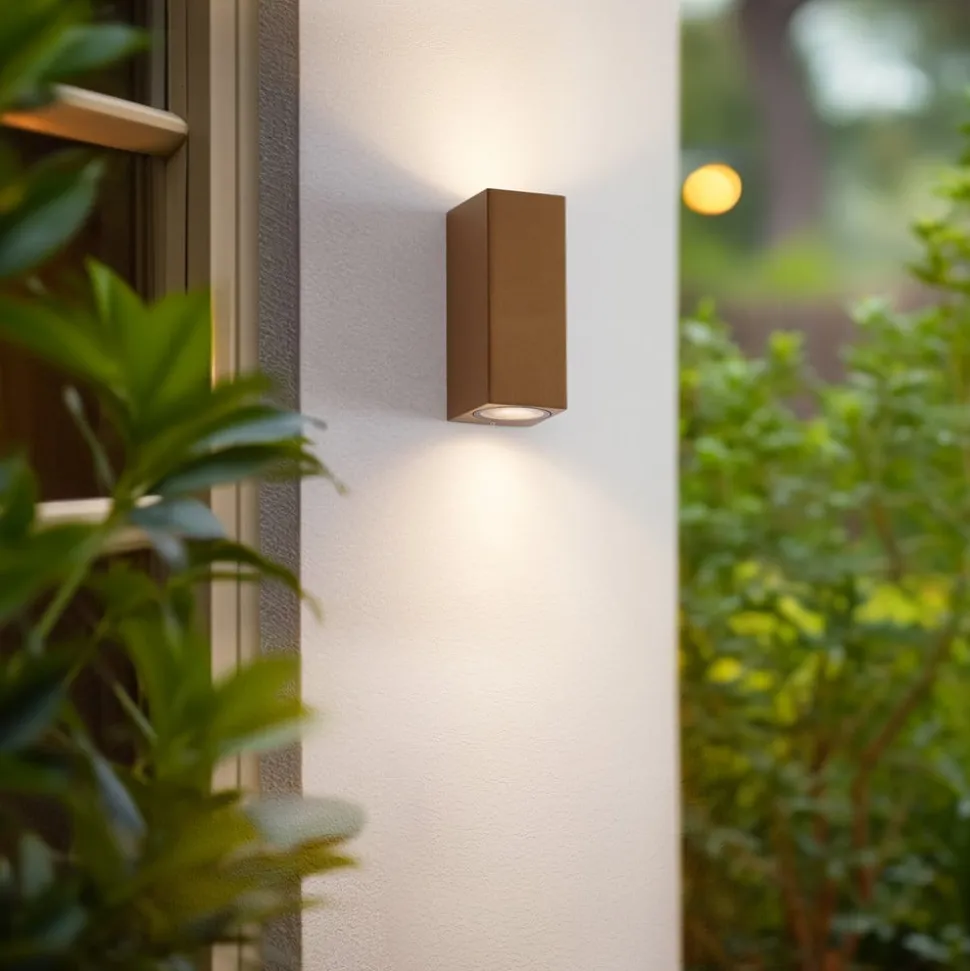 Xava udendørs væglampe – den perfekte ledsager til udendørsarealer i bronze Xava udendørs væglampe kombinerer design og beskyttelse i ét. Med sin kapslingsgrad på IP65 er den ideel til udendørs brug, hvor den bader altaner og terrasser i et stemningsfuldt lys. Den brune overflade på det 2 lyskilder store armatur passer harmonisk ind i moderne stilarter og skaber en indbydende atmosfære med sin op/ned-lysemission. Selvom der ikke medfølger en dæmper, kan lysets intensitet justeres individuelt ved at installere en ekstern dæmper for at skabe den ønskede stemning.