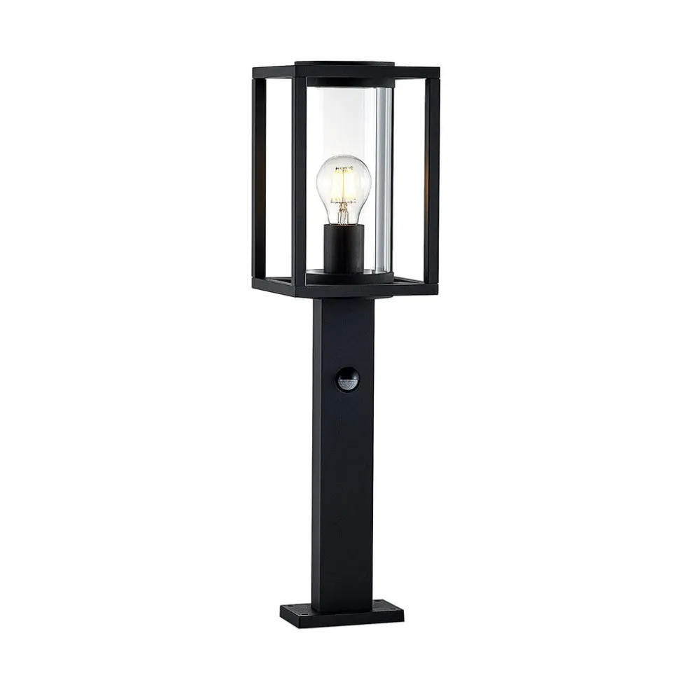 Ferda vejlampe i aluminium og bevægelsessensor Den moderne Ferda vejlampe har et lineært, geometrisk design og giver ekstra funktionalitet og bekvemmelighed. Som belysning af stærkt befærdede udendørsarealer, f.eks. indkørsler eller husindgange, tænder den lyset, når der er brug for det. Det er muligt takket være den integrerede PIR-sensor, som pålideligt registrerer bevægelse og sender impulsen til at tænde direkte. Det øger ikke kun komforten, men også sikkerheden omkring huset. Takket være det robuste design i antracitfarvet aluminium og glascylinderen omkring pæren, der giver ekstra beskyttelse, kan Ferda bruges på mange forskellige måder – 120° registreringsvinkel – 6-10 m registreringsområde – Justerbar lysvarighed (8 sekunder til 8 minutter)