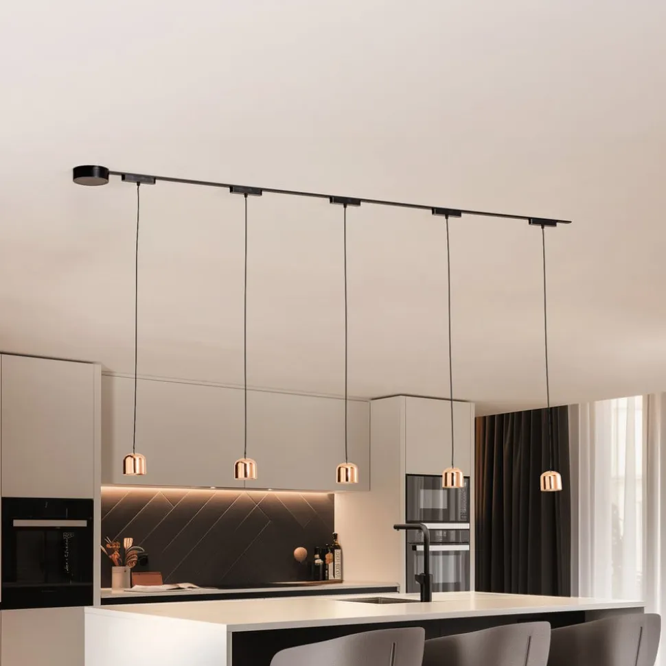Lumaro skinnesystem, pendel, 5 lyskilder, guld, 48V, dæmpbar