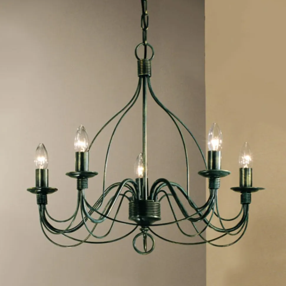 5-lys lysekrone i grøn antikDenne lysekrone giver god belysning med 5 lyskilder og imponerer med sit ædle buede design. På grund af den eksklusive produktion i Tyskland og Italien sikres den bedste kvalitet, fremragende håndværk og korte leveringstider.