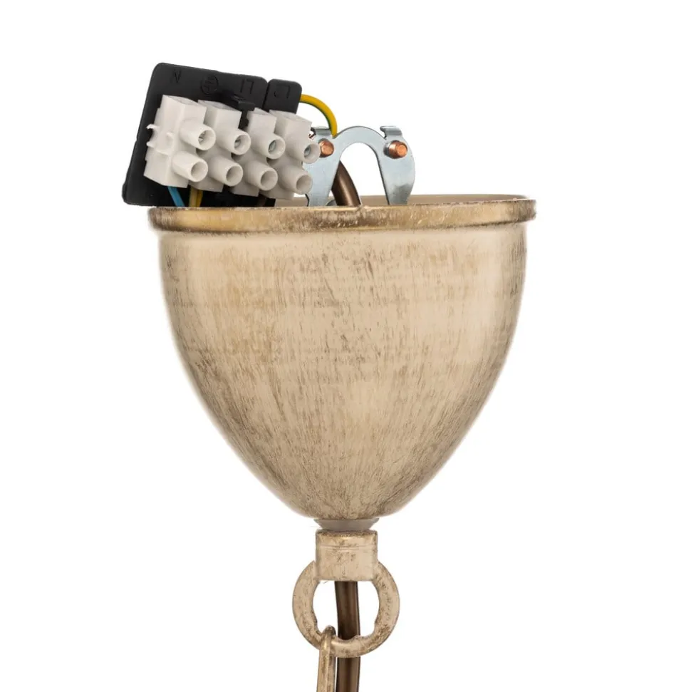 Lysekrone Flora forener tidløs elegance med funktionel alsidighed. Denne lampe er fremstillet af højkvalitetsglas og robust stål og passer perfekt ind i en rustik eller landlig indretning. Kombinationen af satinblankt hvidt og elegant messing giver lysekronen et tiltalende udseende, der skaber en stilfuld atmosfære i både stuen og spisestuen.