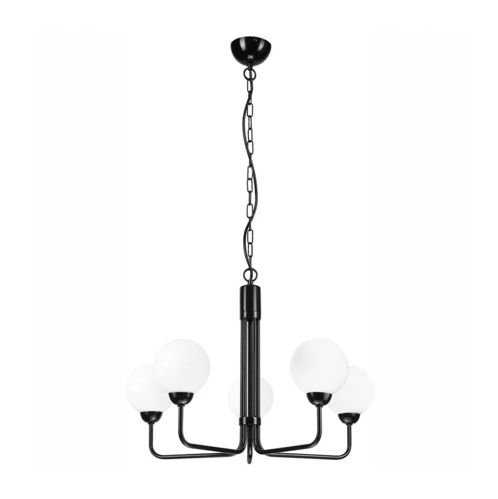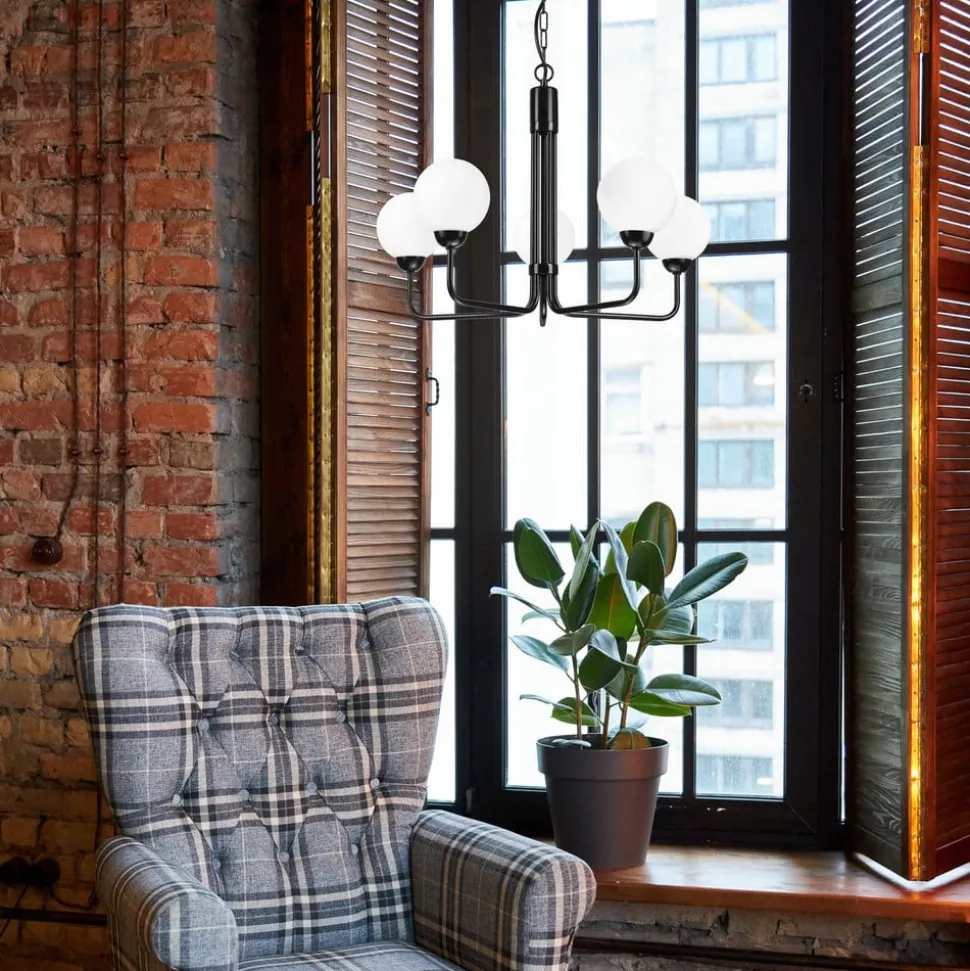 Lysekrone Malou med sine fem elegante glasskærme forener moderne design med høj kvalitet i stål og glas. Den europæisk fremstillede lampe imponerer med sin tidløse æstetik og passer perfekt ind i forskellige boligområder som stuen, entreen og spisestuen. Den sorte farve giver lysekronen et elegant look, der sætter prikken over i’et i både klassiske og moderne interiører.