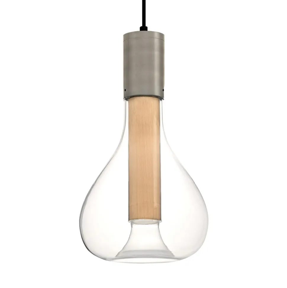 LZF Eris LED-pendellampe, glas, aluminium/bøg